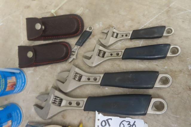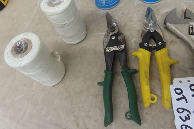 5 Crescent Wrenches, 2 Tin Snips, 3 Sealed Window/ Door Sealant + 2 Rolls of String