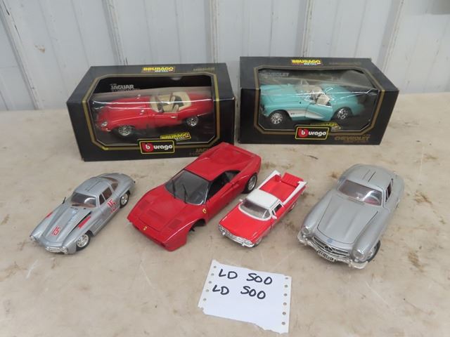 5 Die Cast Cars - Jaguar, Corvette, w Boxes 1/18 Scale & 4 Others