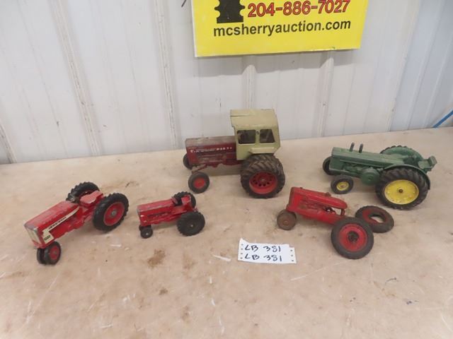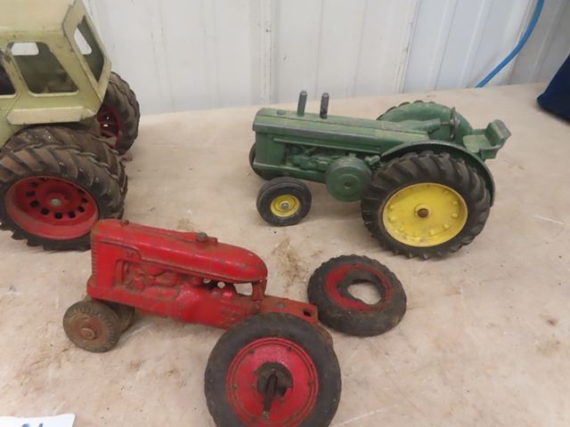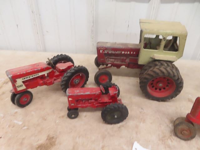 5 Die Cast Tractors - some are Rough; International 404, 656, Massey & John Deere