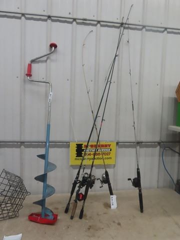 5 Fishing Rods, Reels & Ice Auger