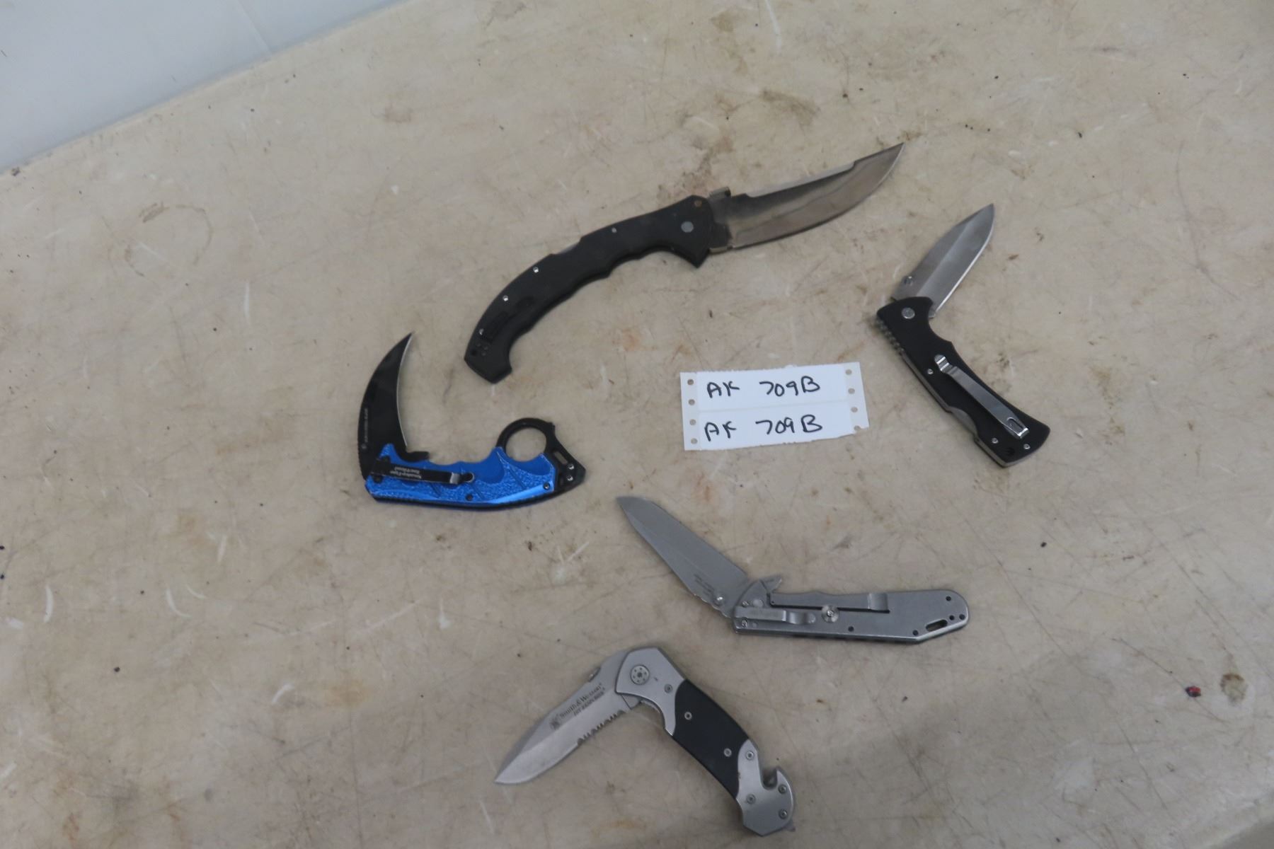 5 Folding Knives: Outbound, Snake Eye Tactical, Smith+Wesson, Cold Steel,Kershaw, Biggest is 13''