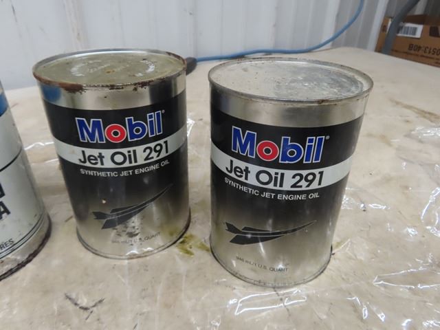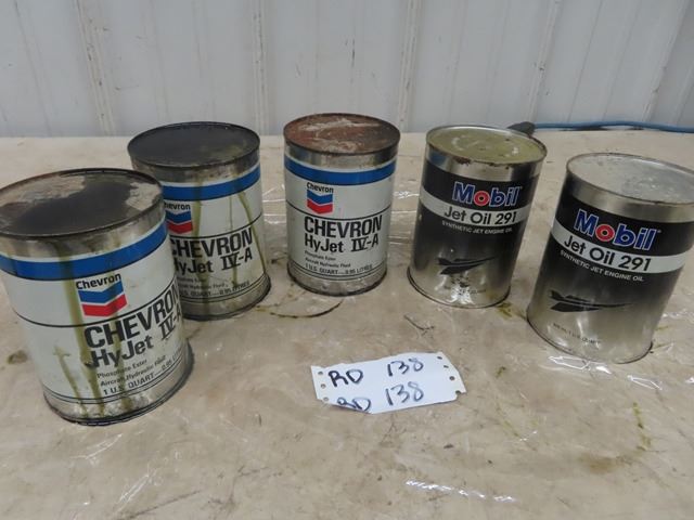 5 Full Quartz Oil Cans 3x Chevron Aircraft Hydraulic Fluid 2x Mobil Jet Synthetic Oil