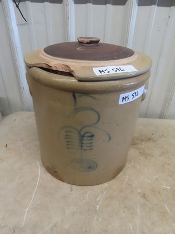 5 Gal Salt Glaze Crock - Damage Lid + Chip on Handle
