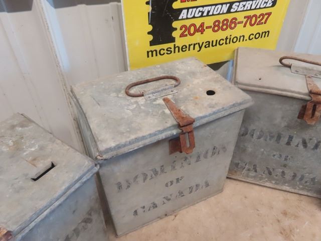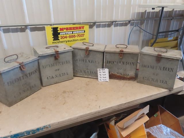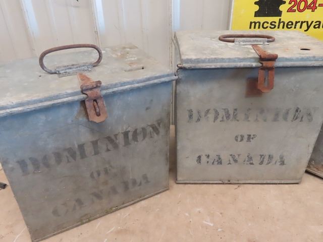 5 Galvanized Lock Boxes Label Dominion of Canada 11.5" x 12"x 9"
