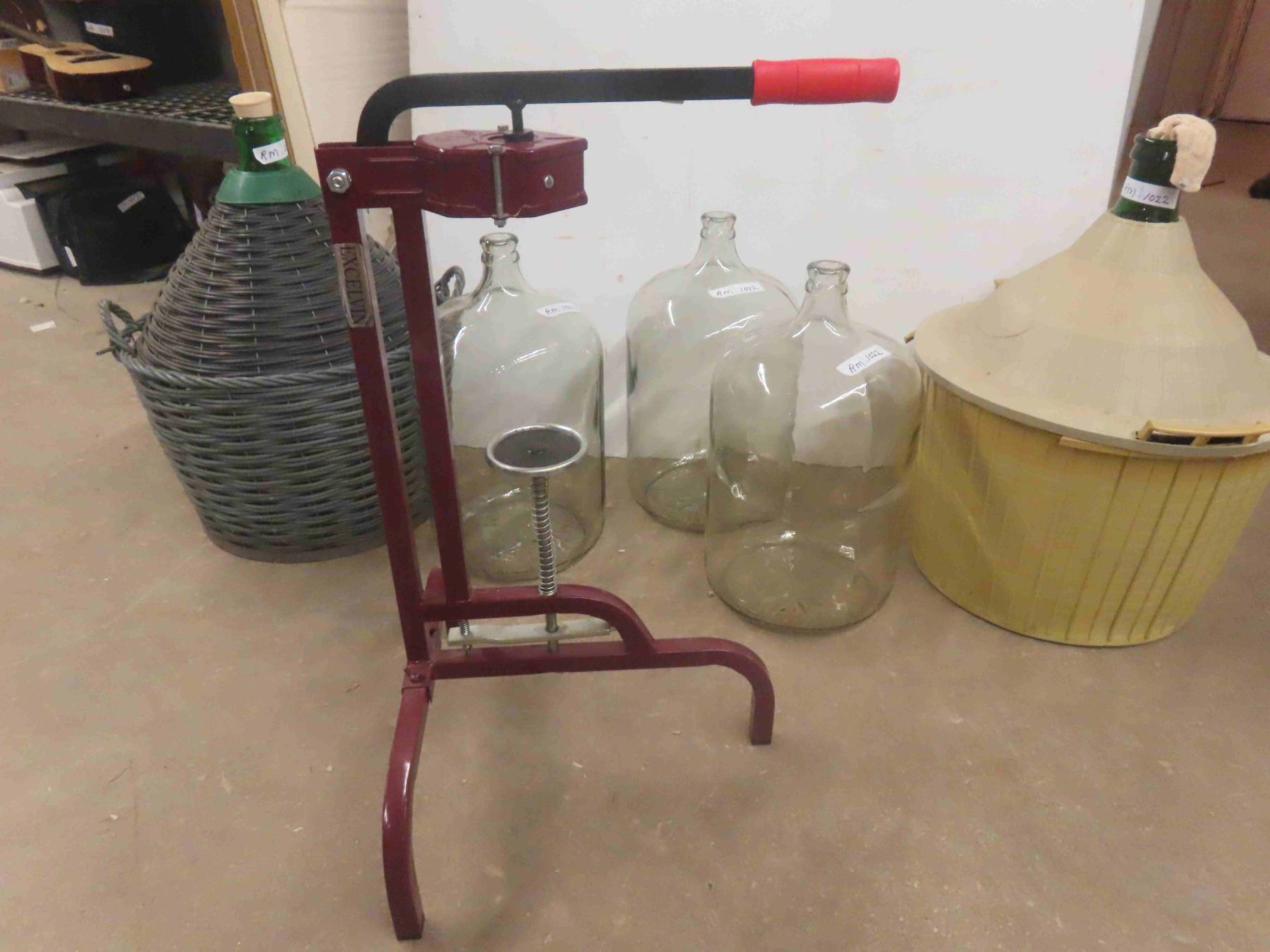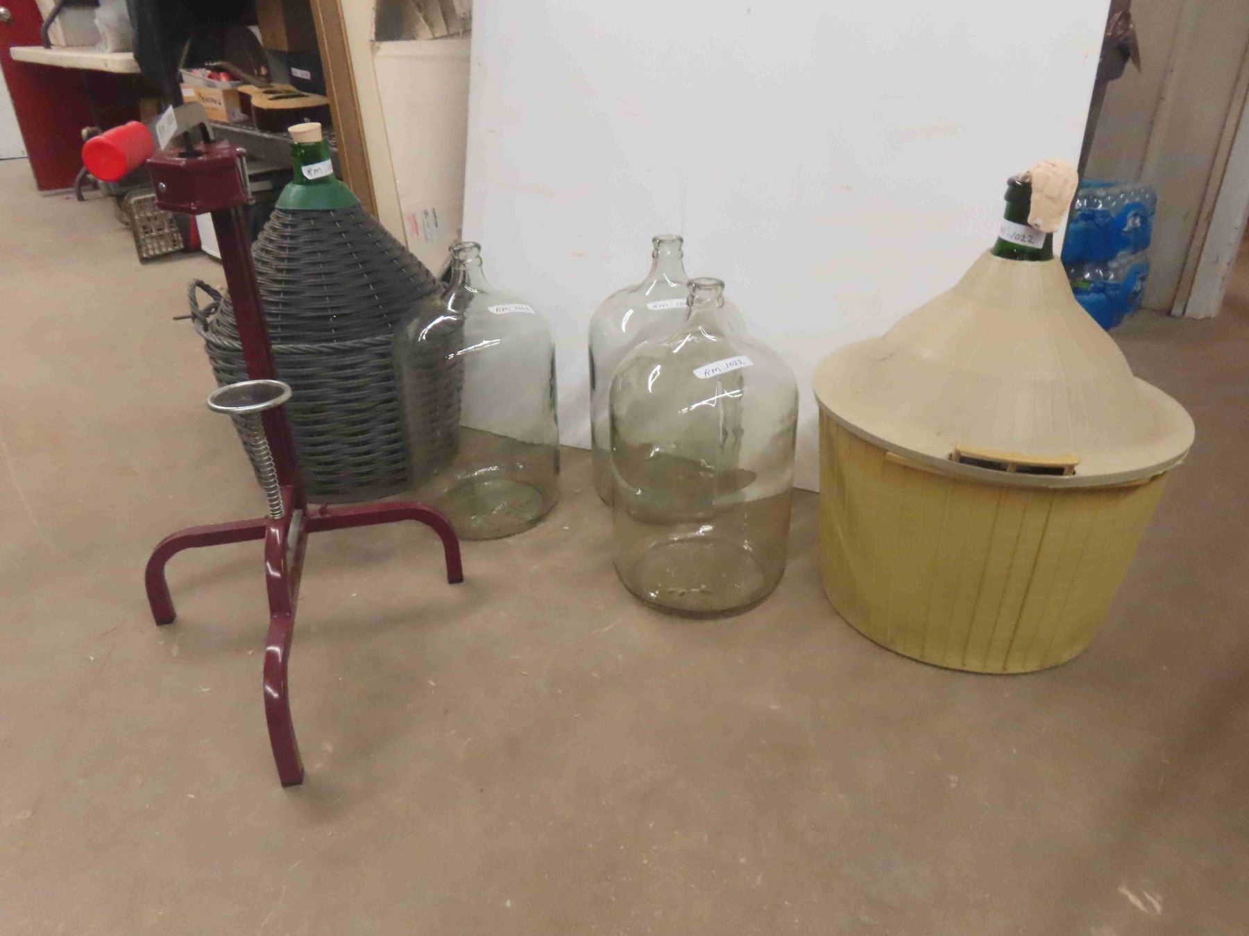 5 Glass Carboys , 2 with Basket Holder , Bottle Corker