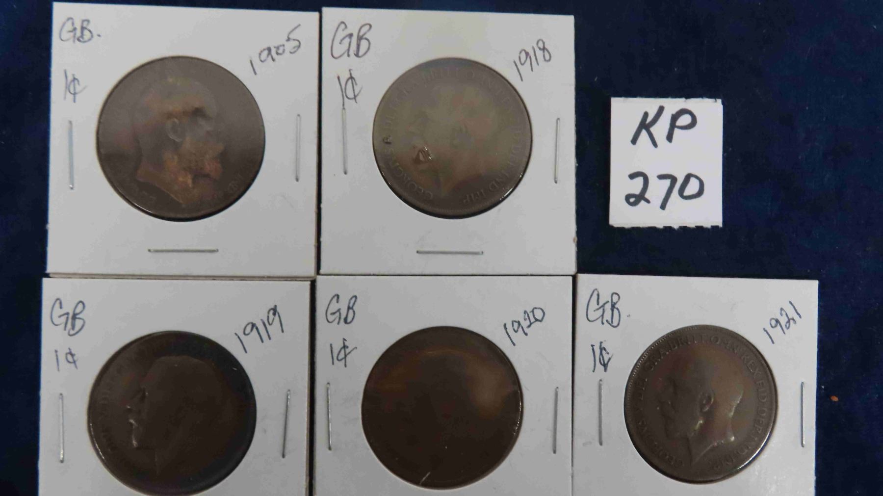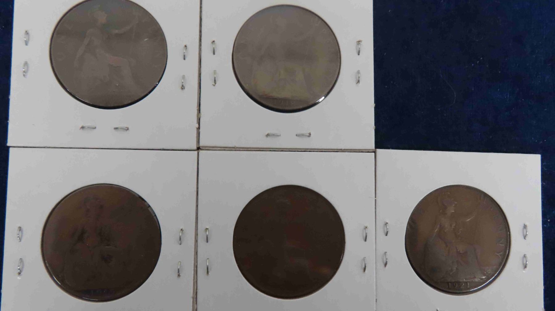 5 Great Britain Pennies 1905, 1918, 1919, 1920, 1921