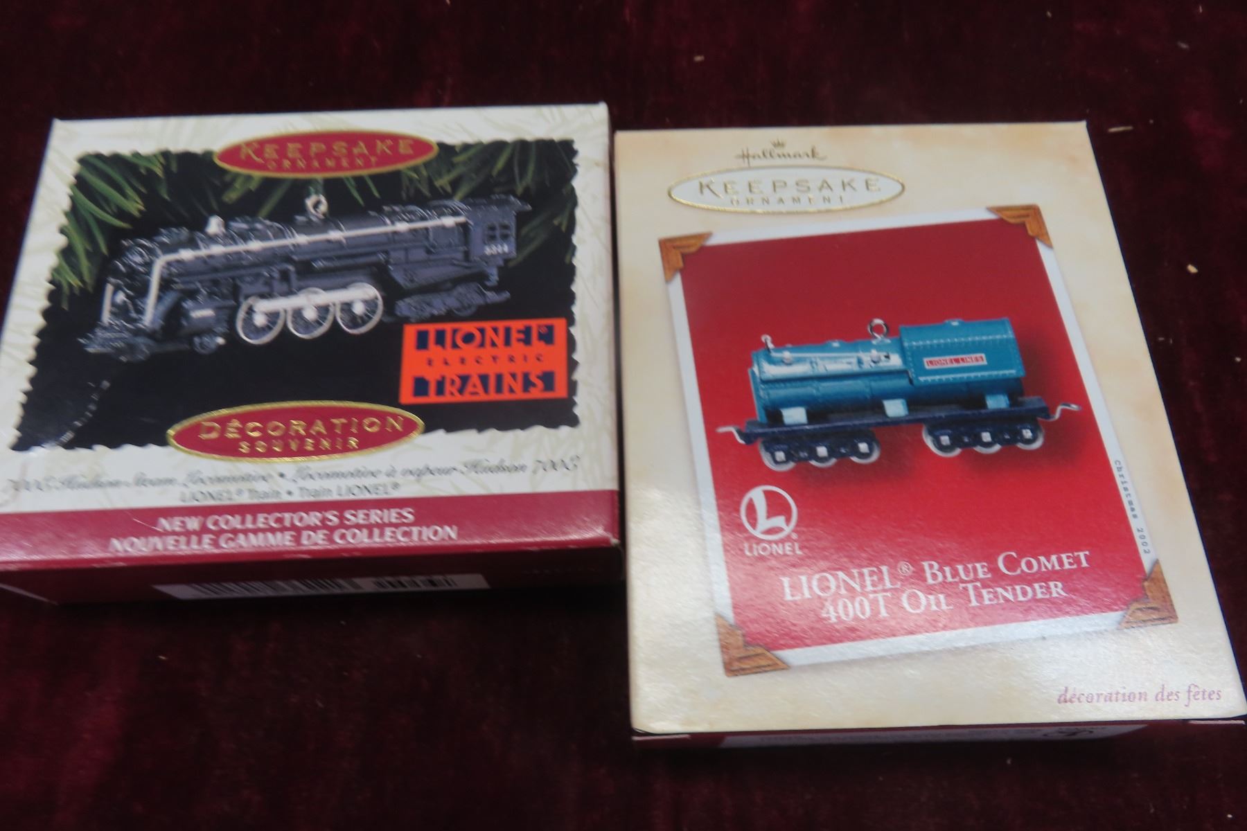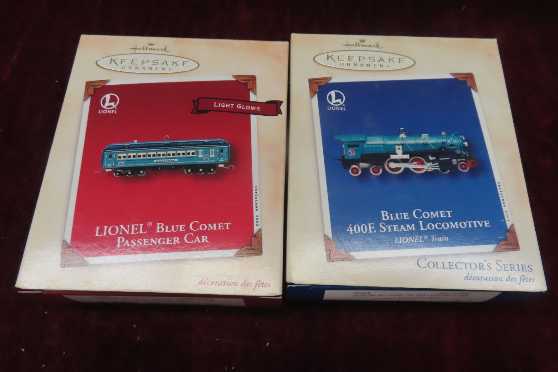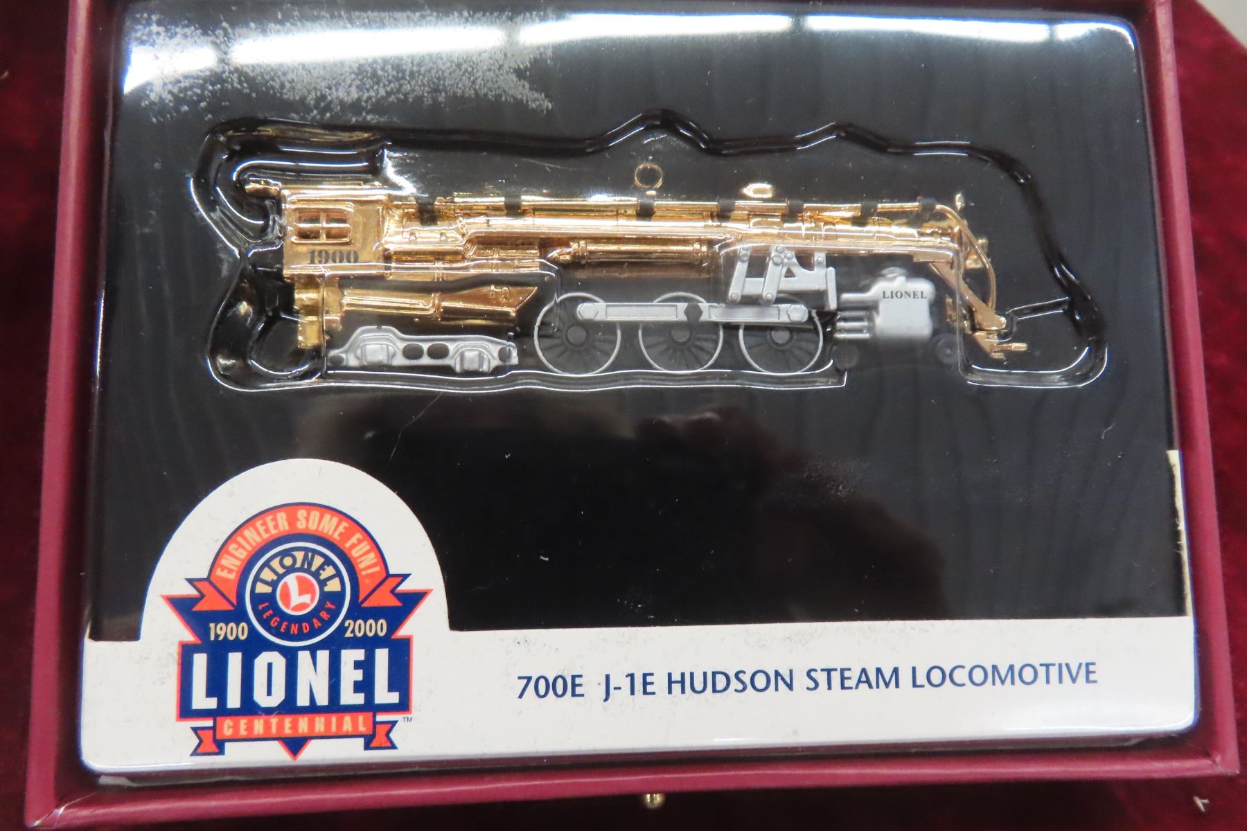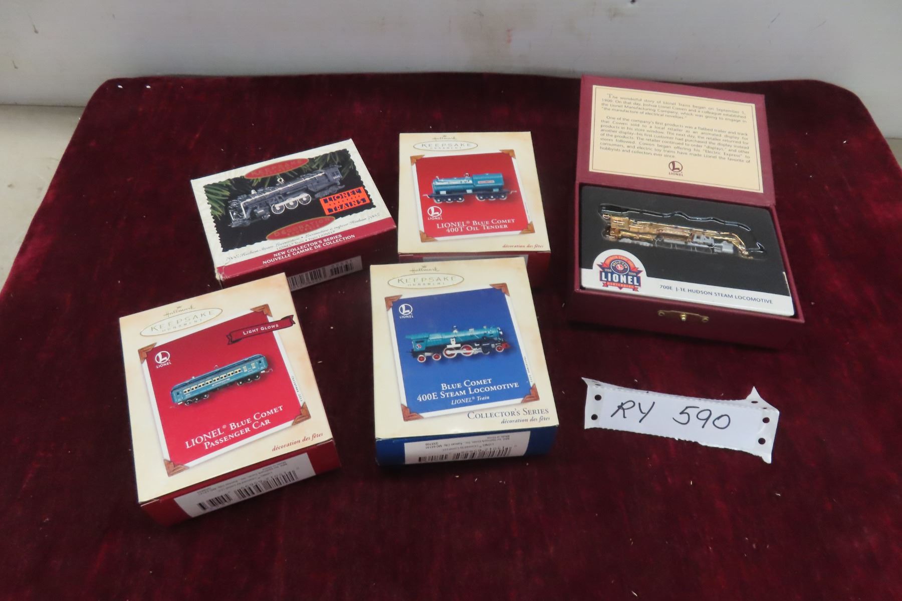 (5) Hallmark Lionel Train Locomotives Christmas Ornaments, Hudson Stern, Blue Comet 400E, 100th Anniversary Gold Special Edition