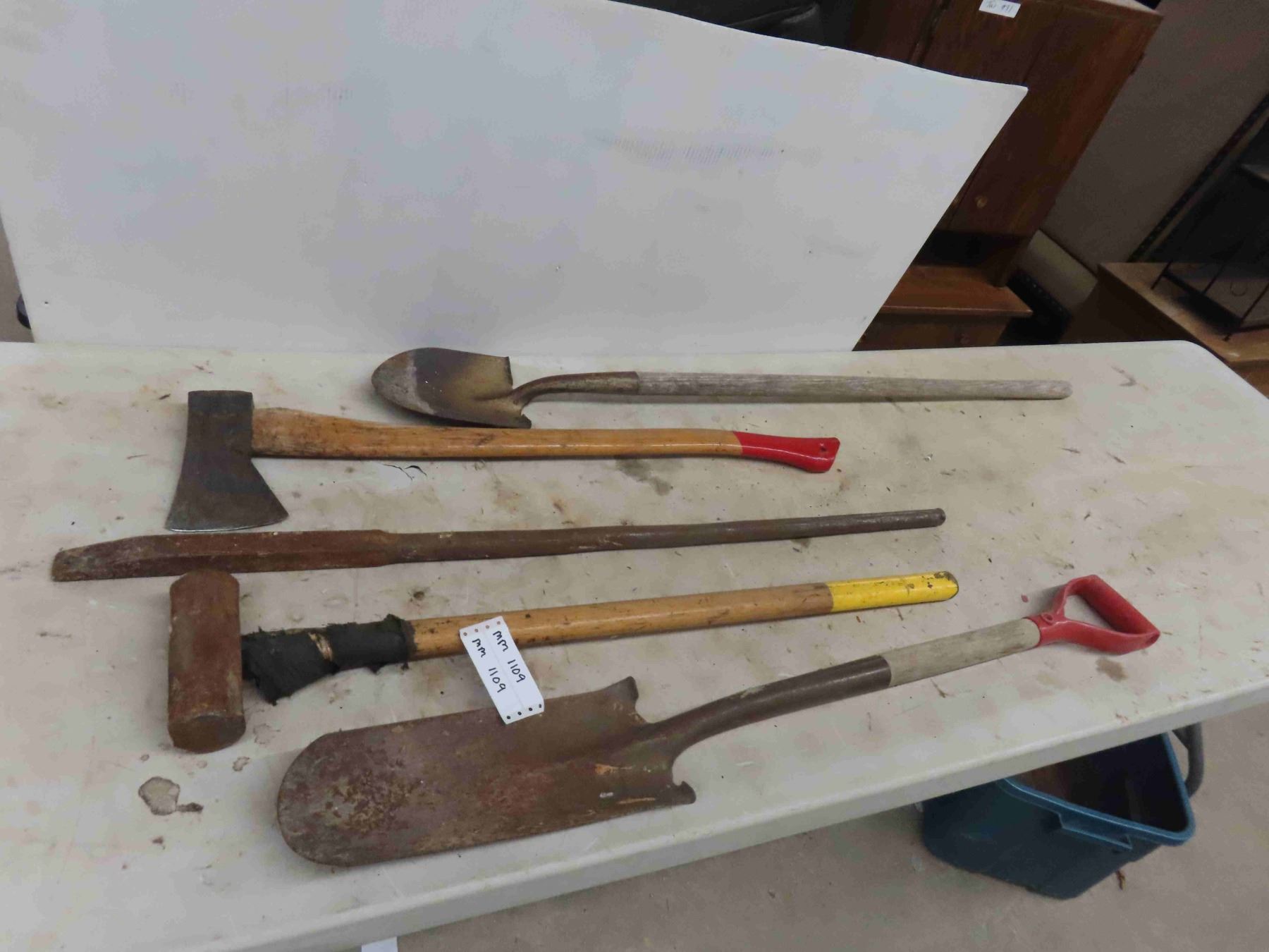5 Hand Yard Tools: Axe, Fencing Bar, Spades, Sledge Hammer