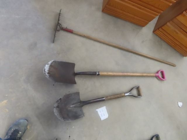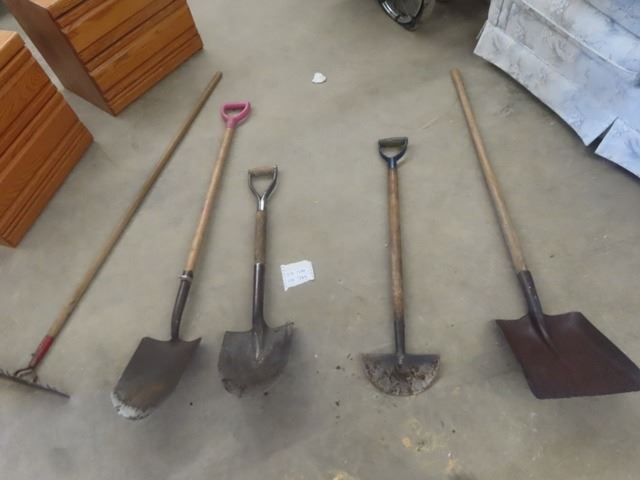 5 Hand Yard Tools ; Shovel, Spade, Edger, Rake