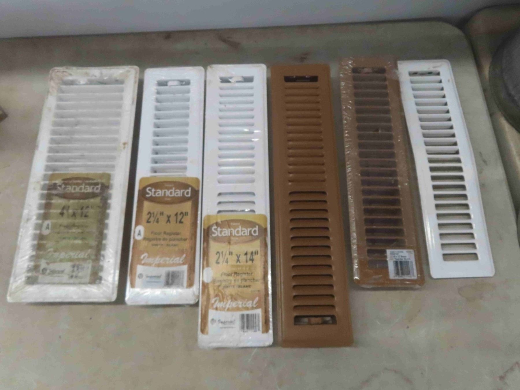 5 Heat Registers ( 4 New in Package ) , 2 Galvanized Watering Cans & More