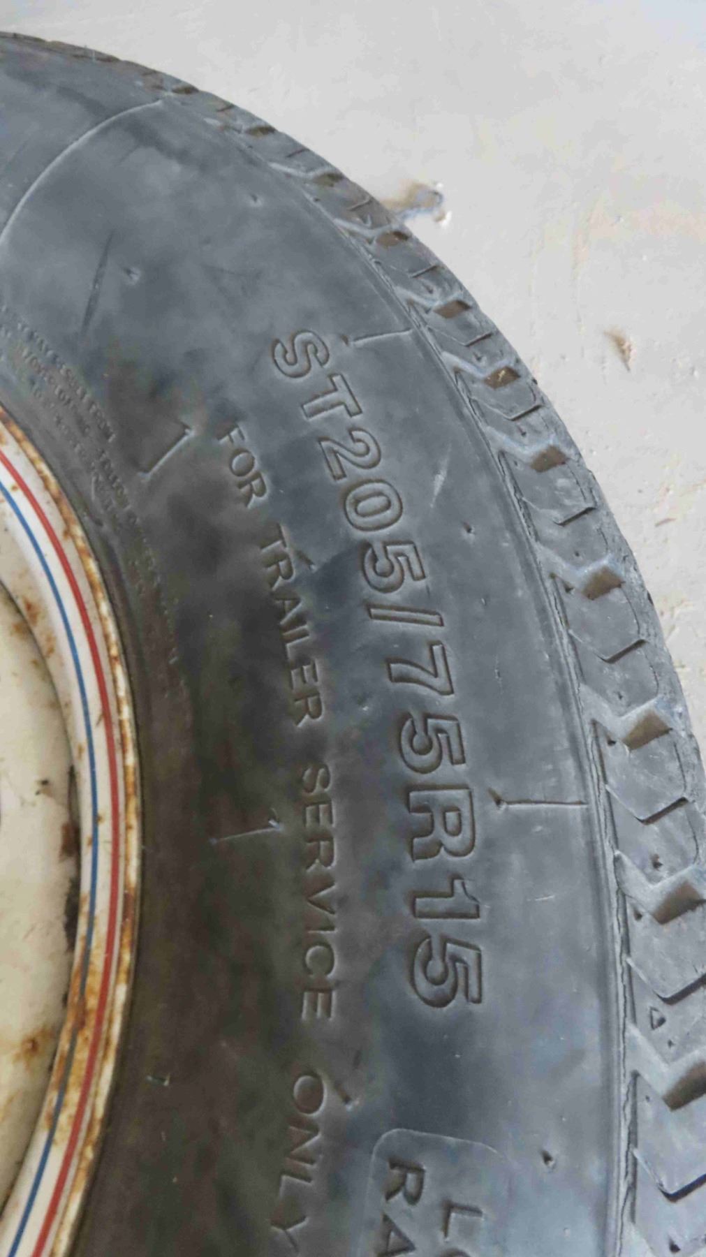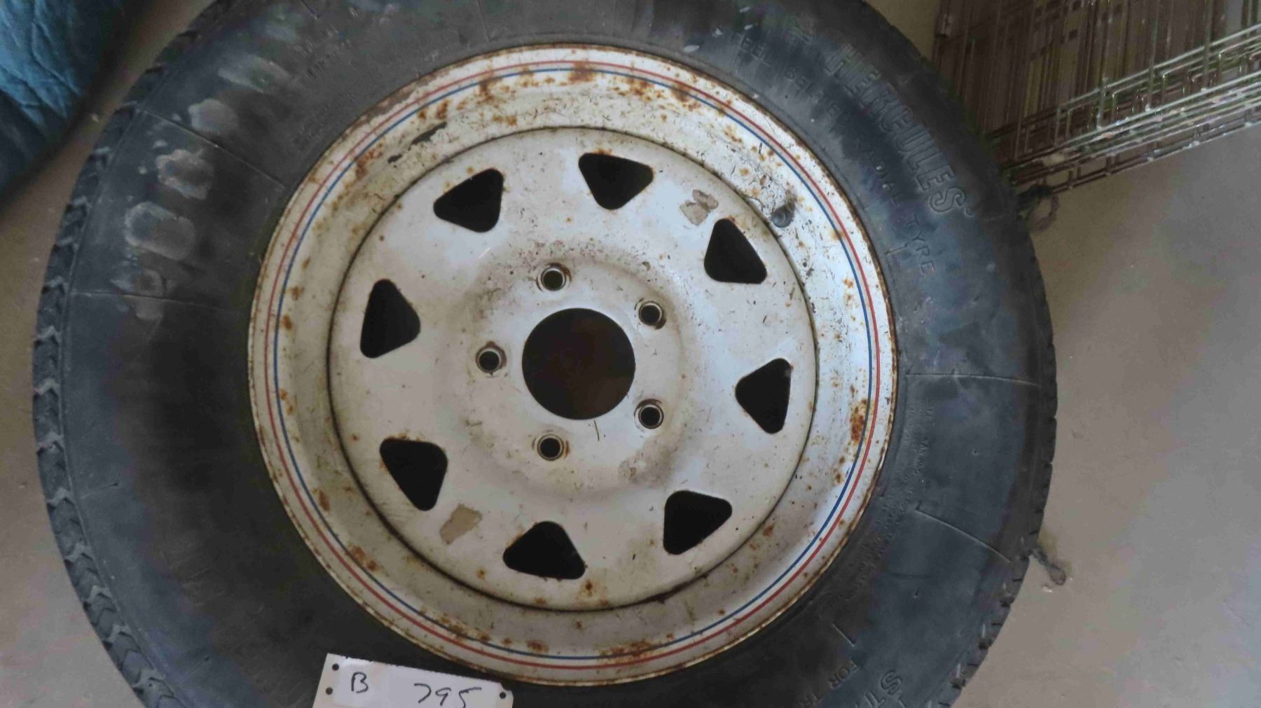 5 Hole Trailer Rim with Tires (Worn Out) ST2-5/75R *Value is in the Rims