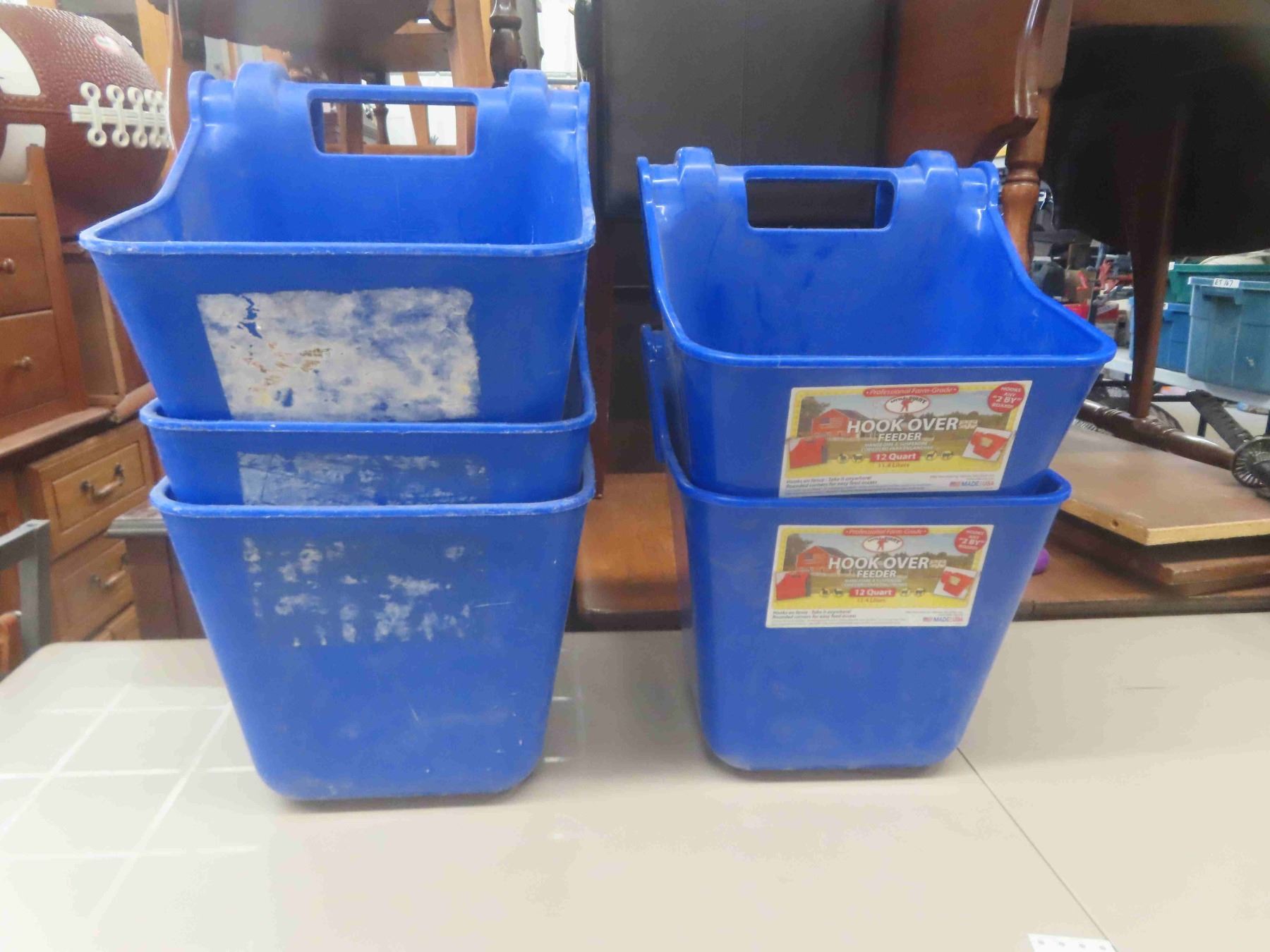 5 Hook Over Feeder Buckets 12 Quart - 2 are Brand New