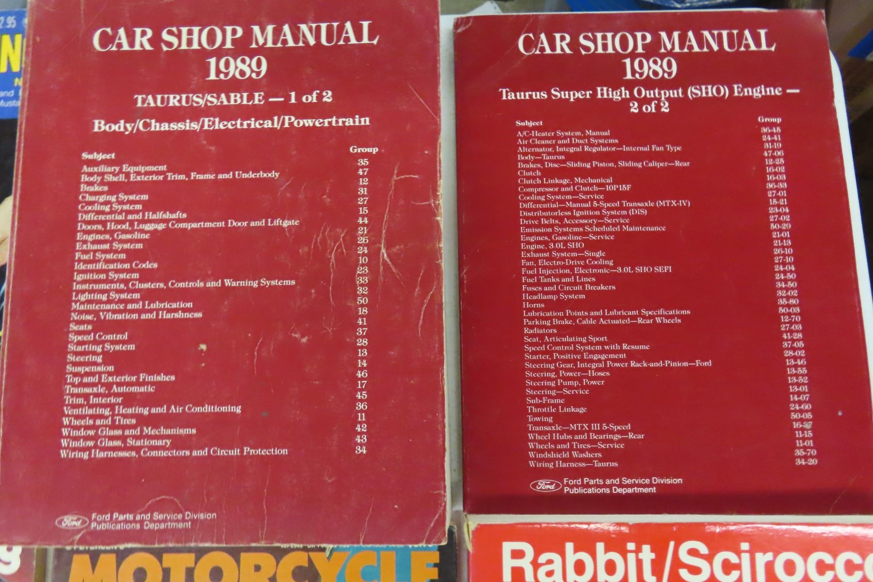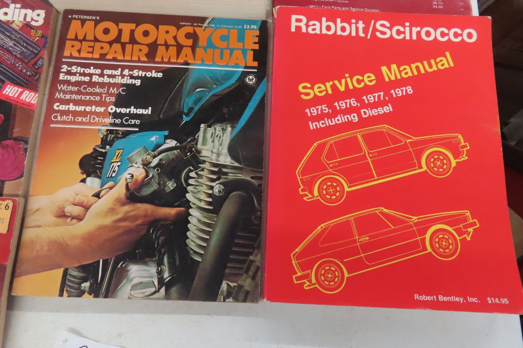 (5) Hot Rod Magazines, Motorcycle Repair Manual, 1975-78 VW Manual + 1989 Taurus SHO Manual for Super High Output Performance Car