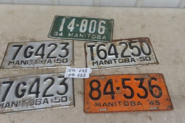 5 Manitoba License Plates 1934, 1945, and 3x 1950