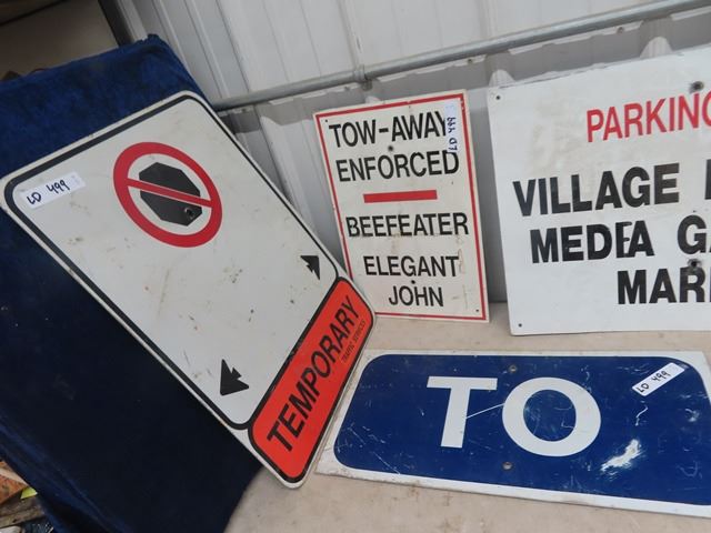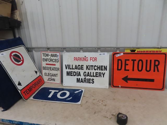 5 Metal Parking Signs, Parking, Detour, Plus More - Biggest Sign is 24" x 18"