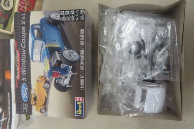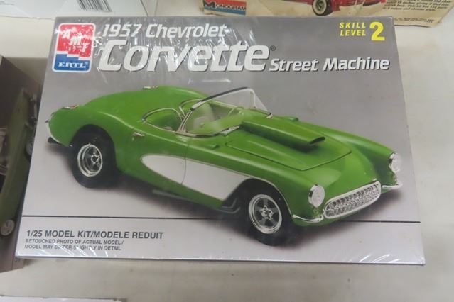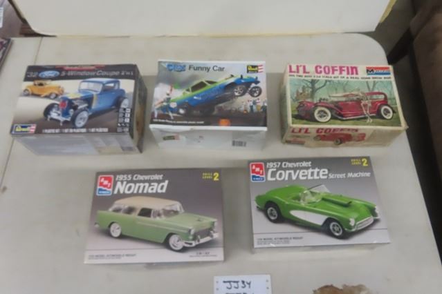 5 Model Kits : '57 Vette- Sealed, '55 Nomad, '32 Ford Coupe, Moss Deal Funny Car, Lil Coffin - 1:24 + 1:25 Scale