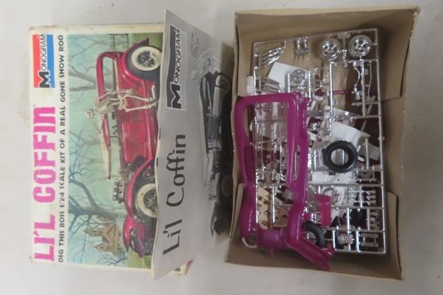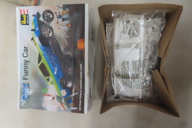 5 Model Kits : '57 Vette- Sealed, '55 Nomad, '32 Ford Coupe, Moss Deal Funny Car, Lil Coffin - 1:24