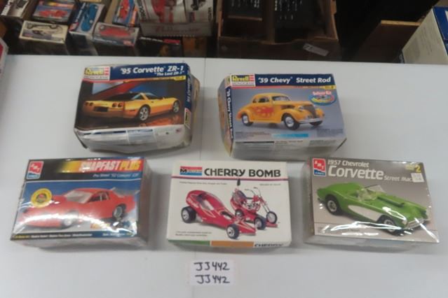 5 Model Kits: '92 Camaro- Sealed, '57 Vette- Sealed, '95 Vette, '39 Chevy, Cherry Bomb- 1:24 +1:25 S