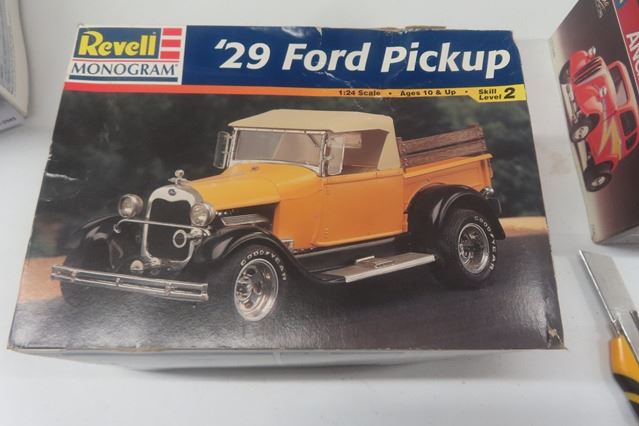 5 Model Kits: '92 Camaro- Sealed, '71 Cuda, Anglia Gasser, '29 Ford Pick Up, '69 Shelby Mustang- 1:24 + 1:25 Scale