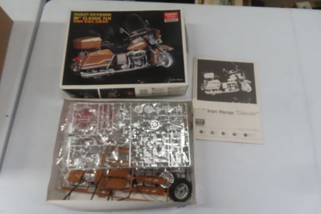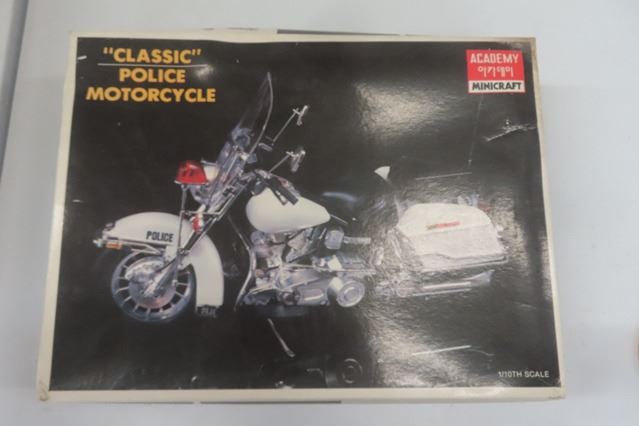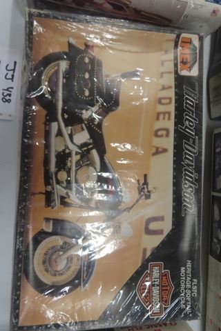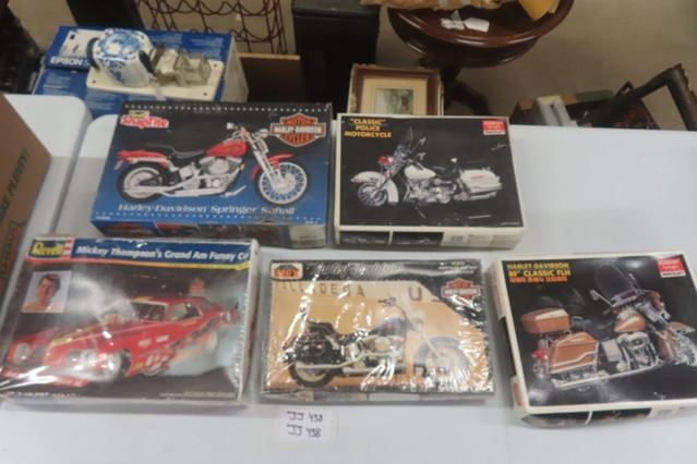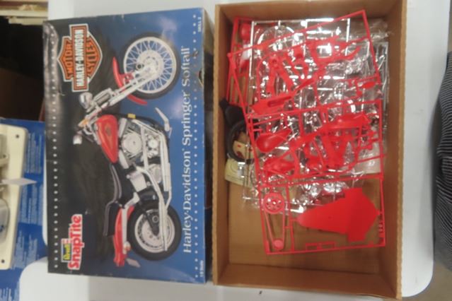 5 Model Kits: Harley Springer, Harley Police Bike, Mickey Thompsons Grand Am- Sealed, Harley Davidson Heritage, Harley Classic- 1:8, 1:10, 1:9, 1:16 Scale