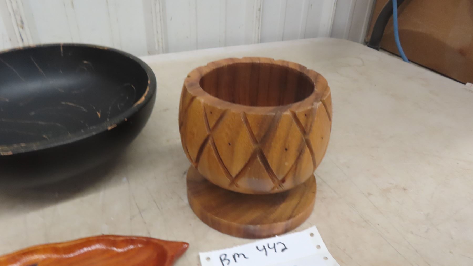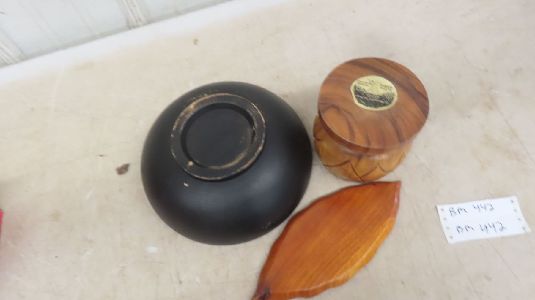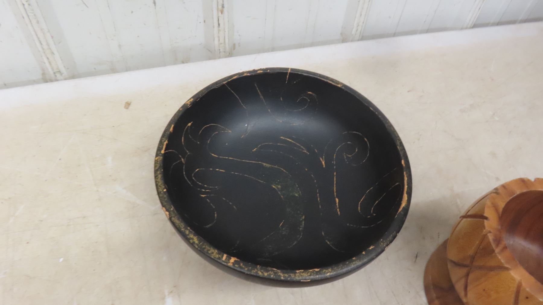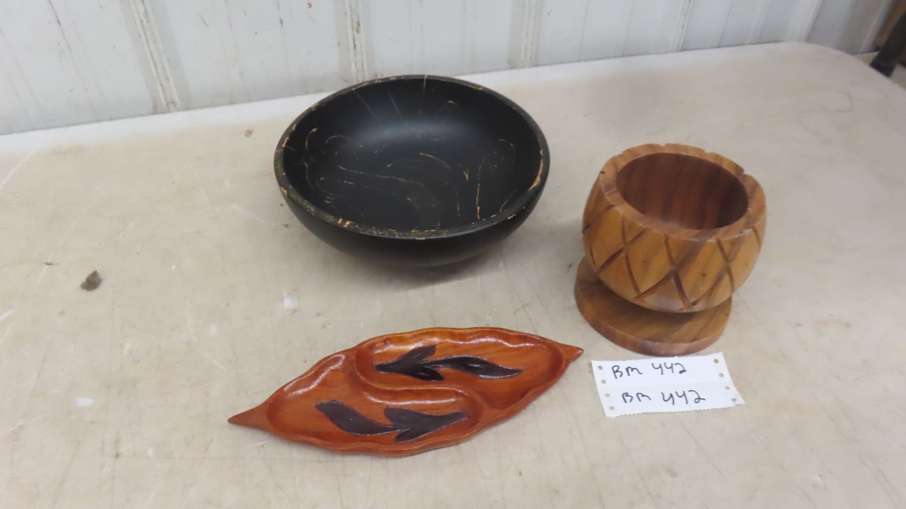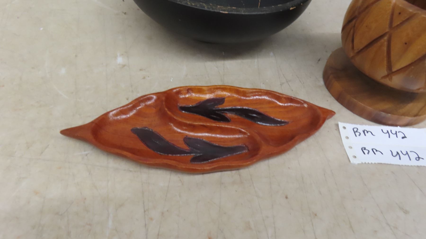 5'' Monkey Pod Wood Pineapple Shaped Bowl, Hand Carved Teak Leaf Shaped Tray, Black 10'' Round Bowl