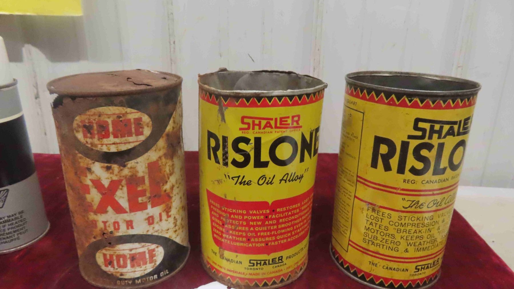 5 Oil Cans : North Star , (2) Shaler Rislone Quart, Rusty Exel , GM Engine