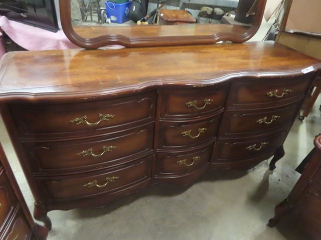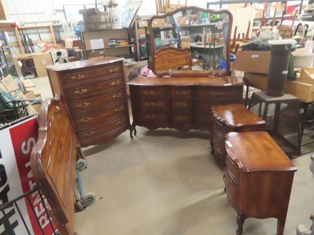 5 Pc Bedroom Suite; Dresser 33" x 64" x 19" + Mirror 37" x 43", Dresser 48" x 37" x 19" , 2 Night Tables 25" x 23" x 16", Headboard 60" Wide