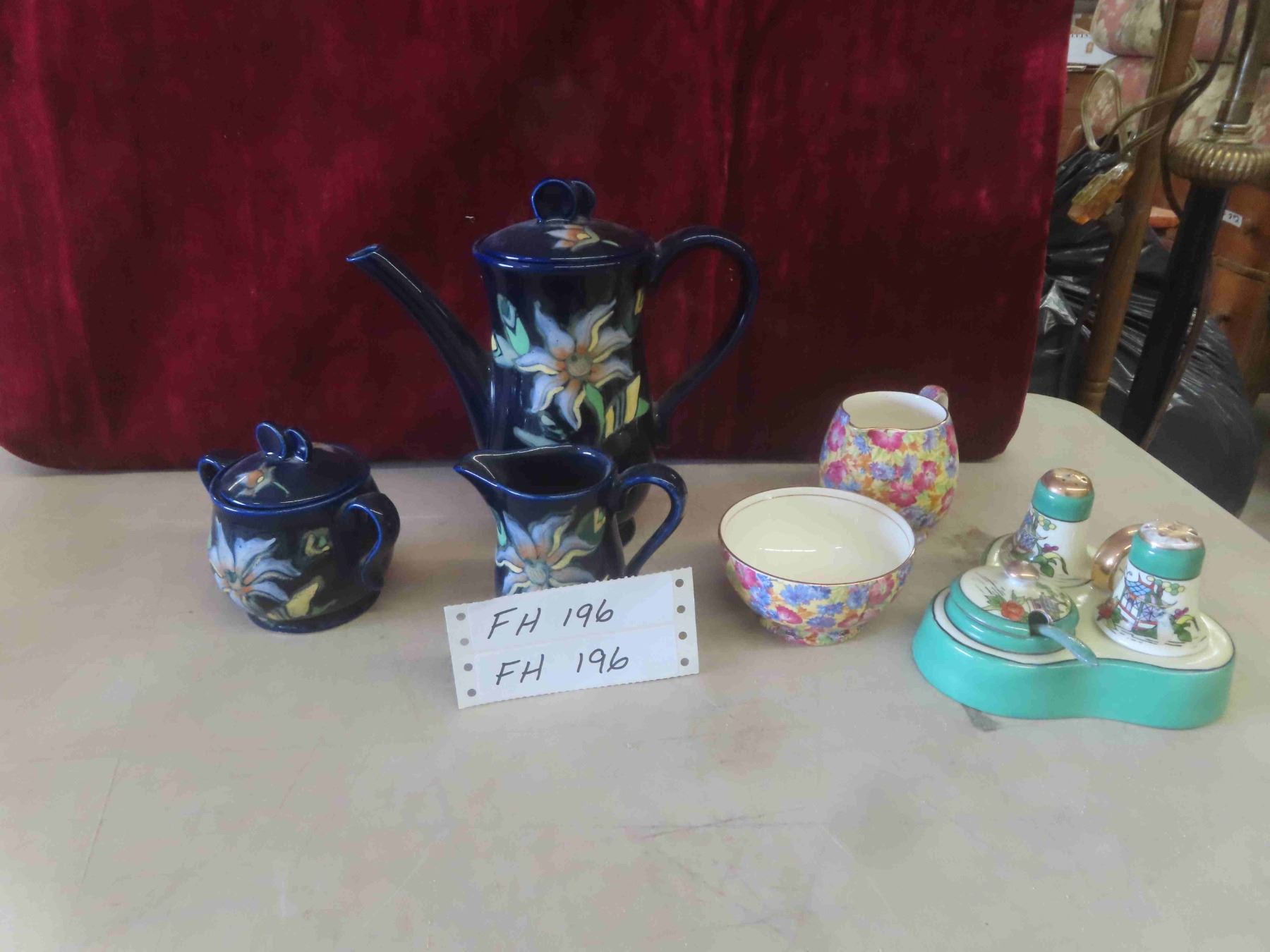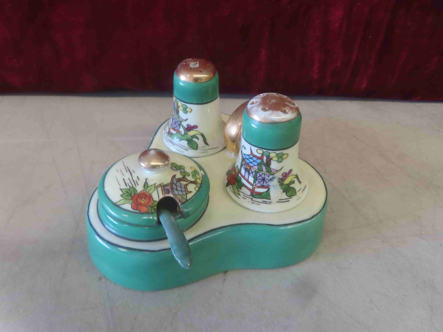 5 Piece Coffee Cream and Sugar , Royal Winton Cream and Sugar, Noritake Hand Painted Salt and Pepper 5 Piece Set