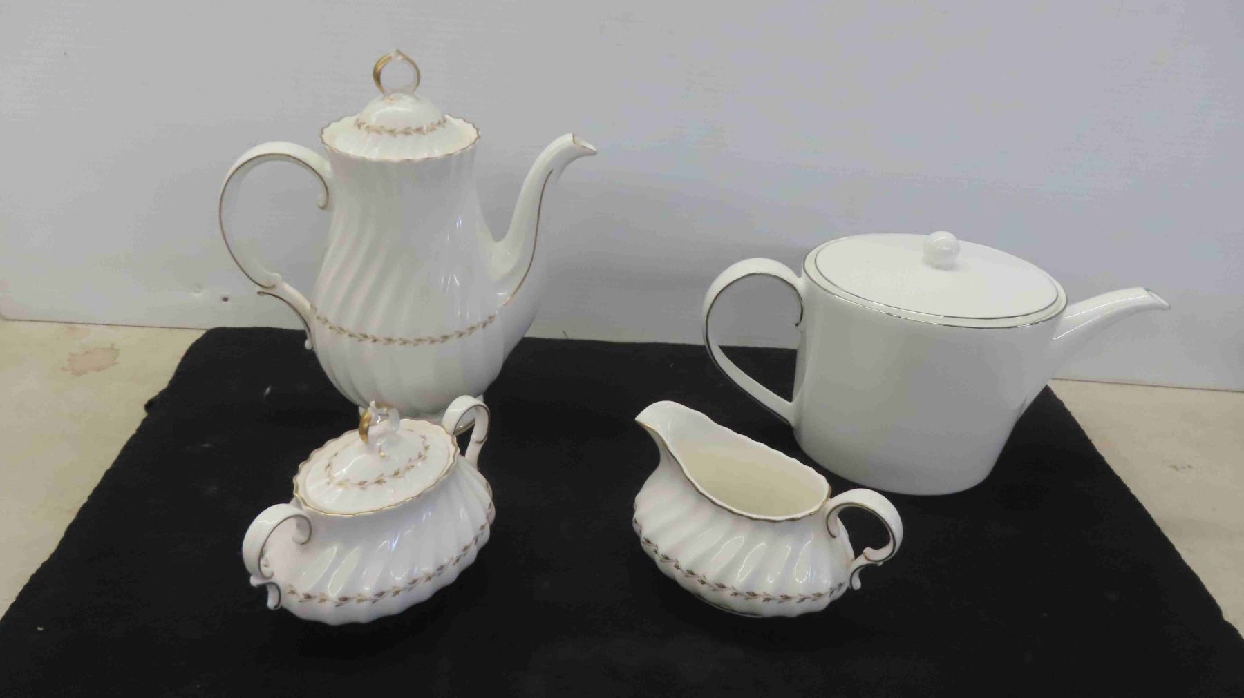 5 Pieces Royal Doultan Adrien Pattern : Cream , Sugar , Teapot , Royal Doultan Signature Platinum Tea Pot