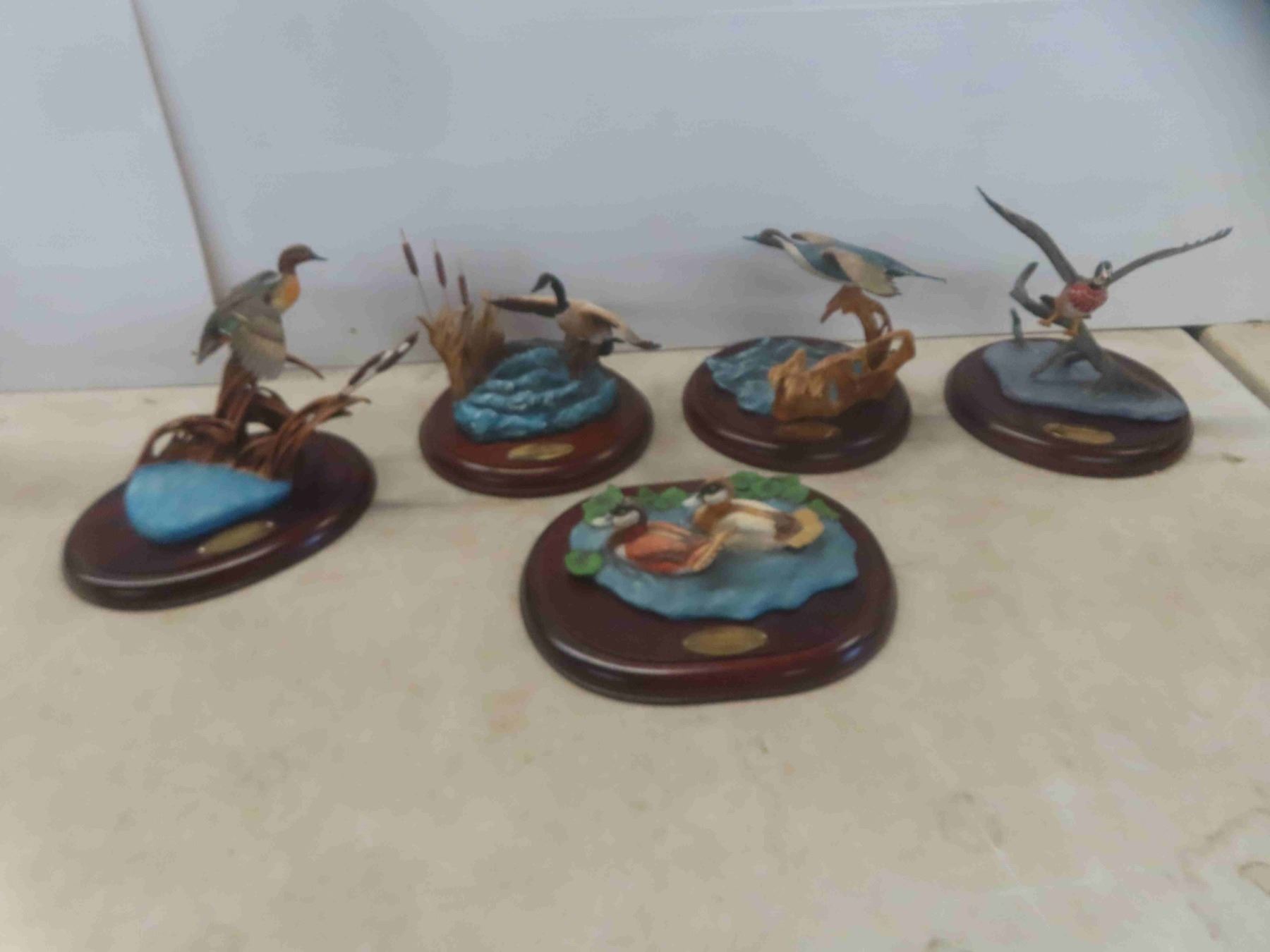 5 Pieces of David Maass Ducks Mounted on Wood Base