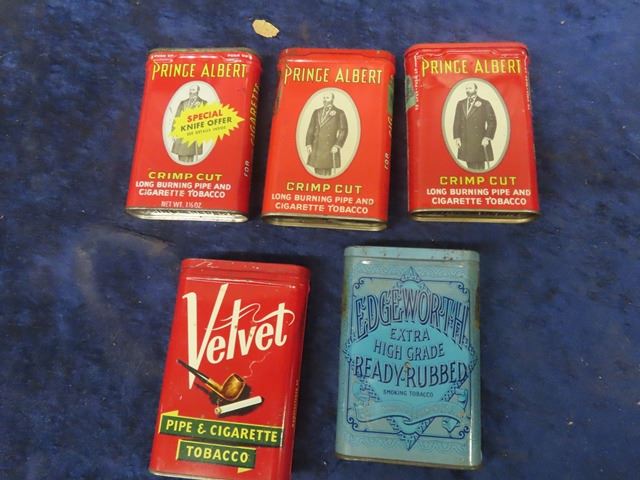 5 Pocket Tobacco Tins 1) Velvet 1)Edgeworth & 3 Prince Albert