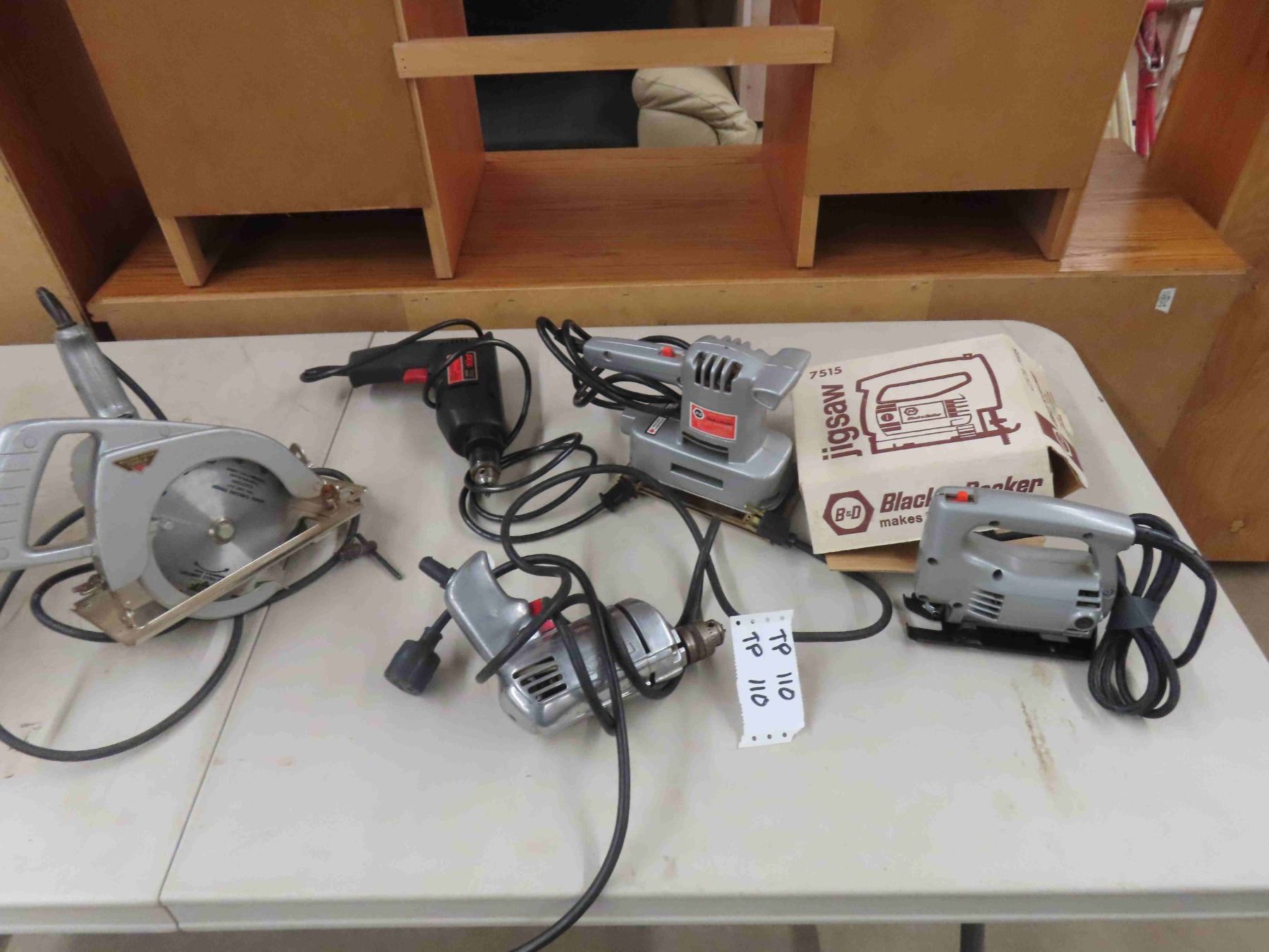 5 Power Tools ; B+D Jig Saw + Sander, Skil Drill, Craftsman Drill, Miller Falcon Drill