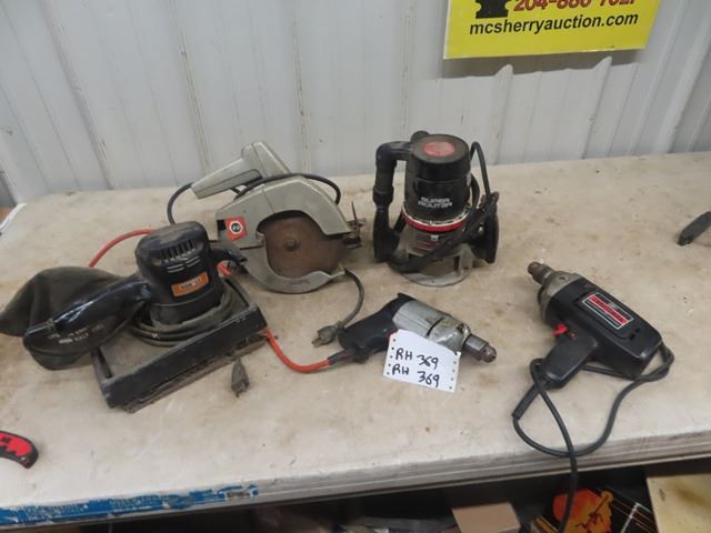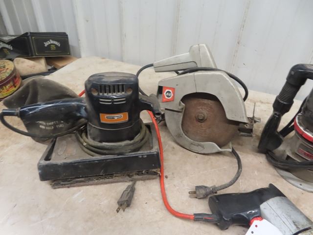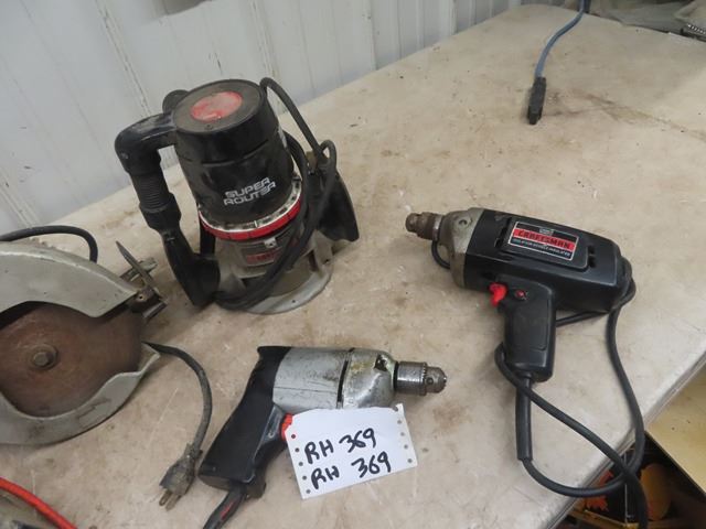 5 Power Tools; Craftsman Router, 2 Drills, Sander, Circular Saw