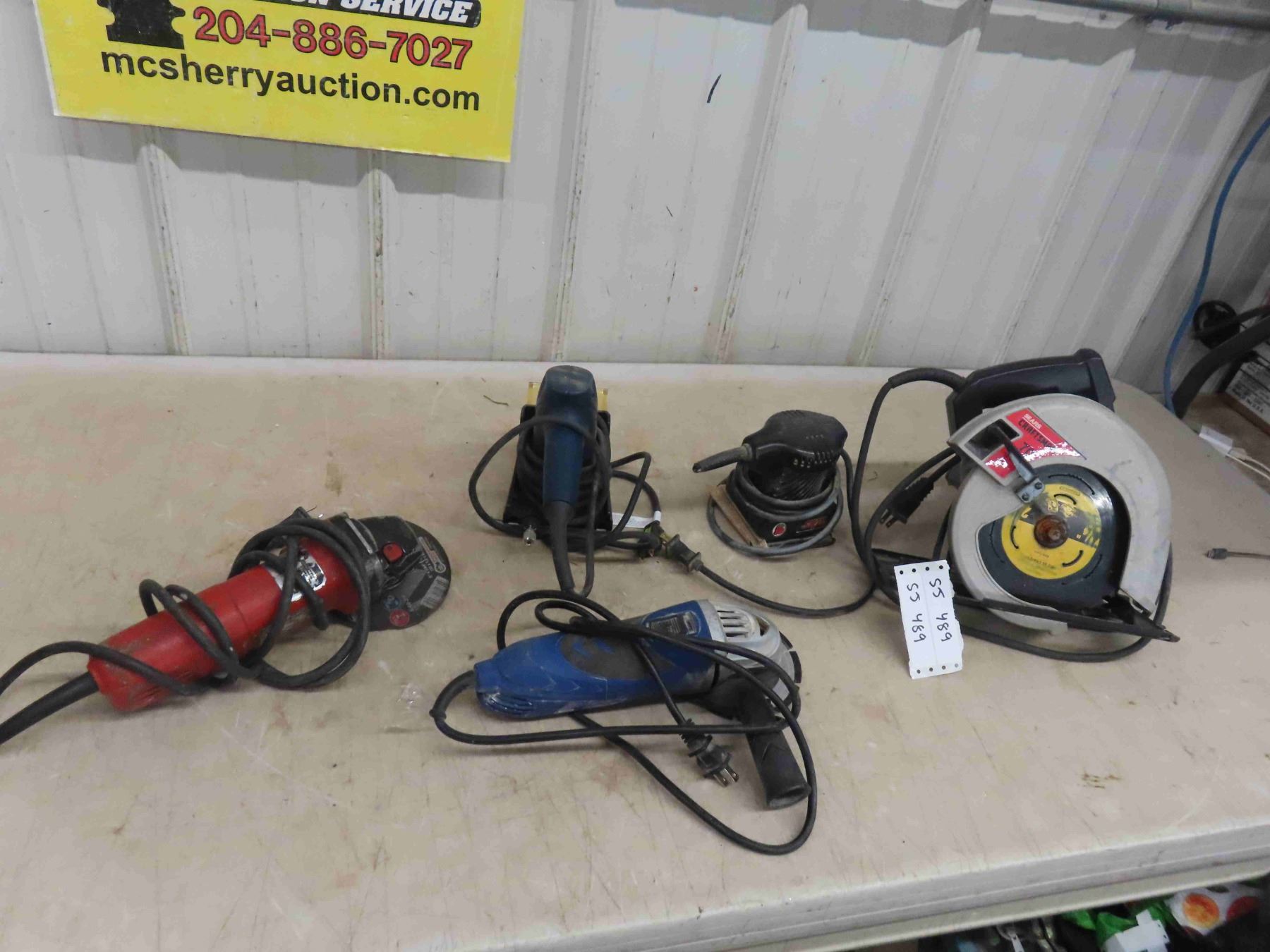 5 Power Tools: Skil Saw, Planer, 2 Grinders, Sander