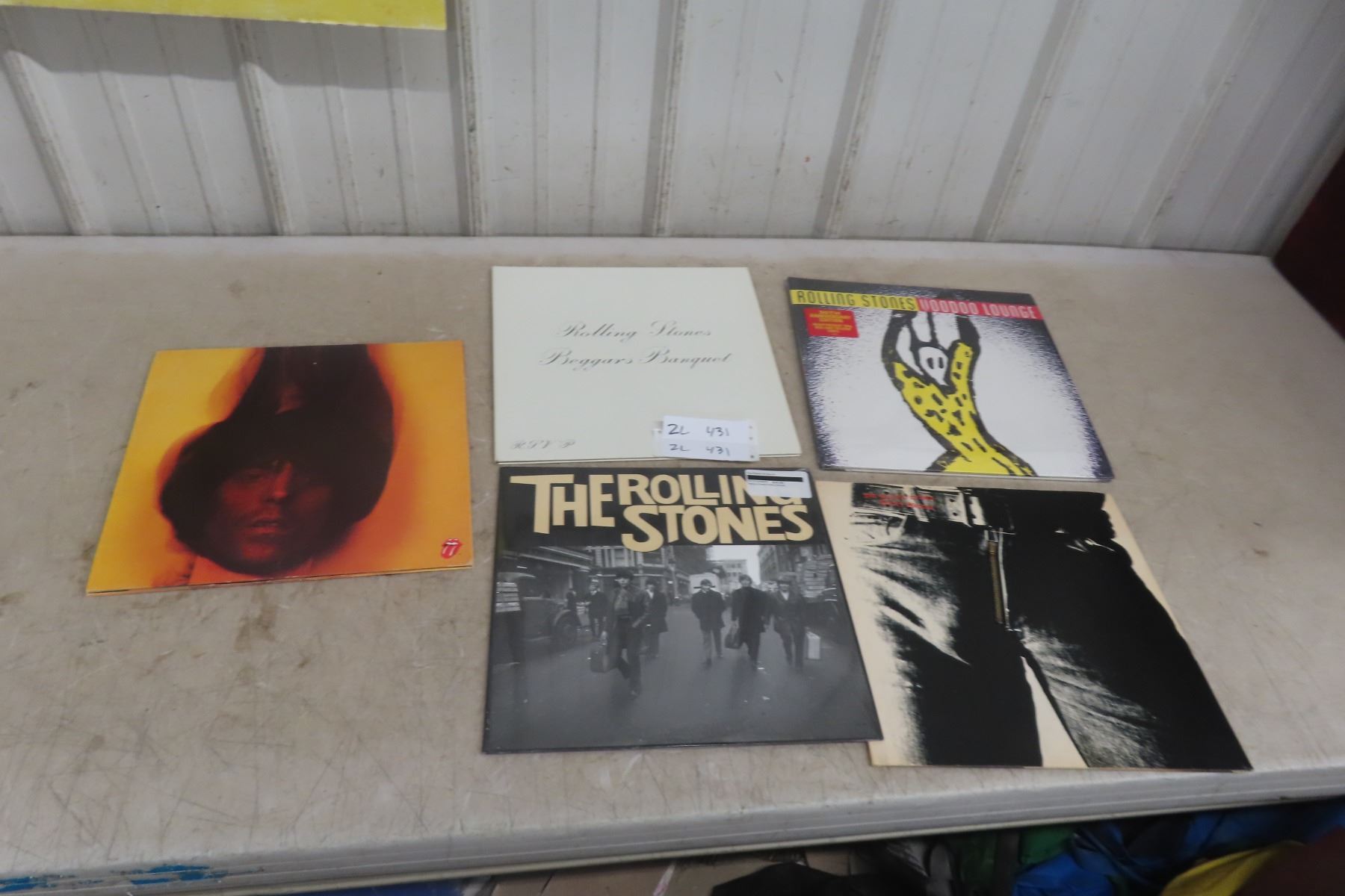 5 Rolling Stones Records, Good Condition: Voodoo Lounge, Beggars Banquet, Sticky Fingers and Others.