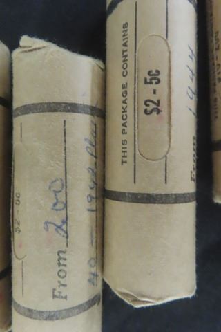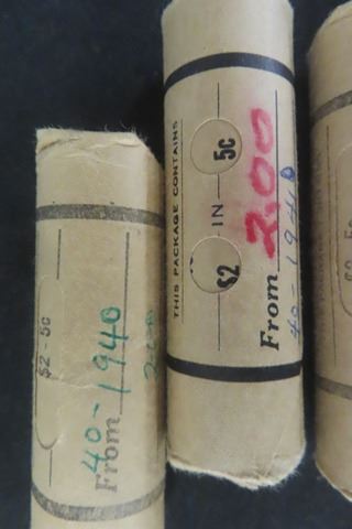 5 Rolls Canada 5 Cent Coins- 1940, 1941, 1942, 1944, 1953, - 40 Per Roll