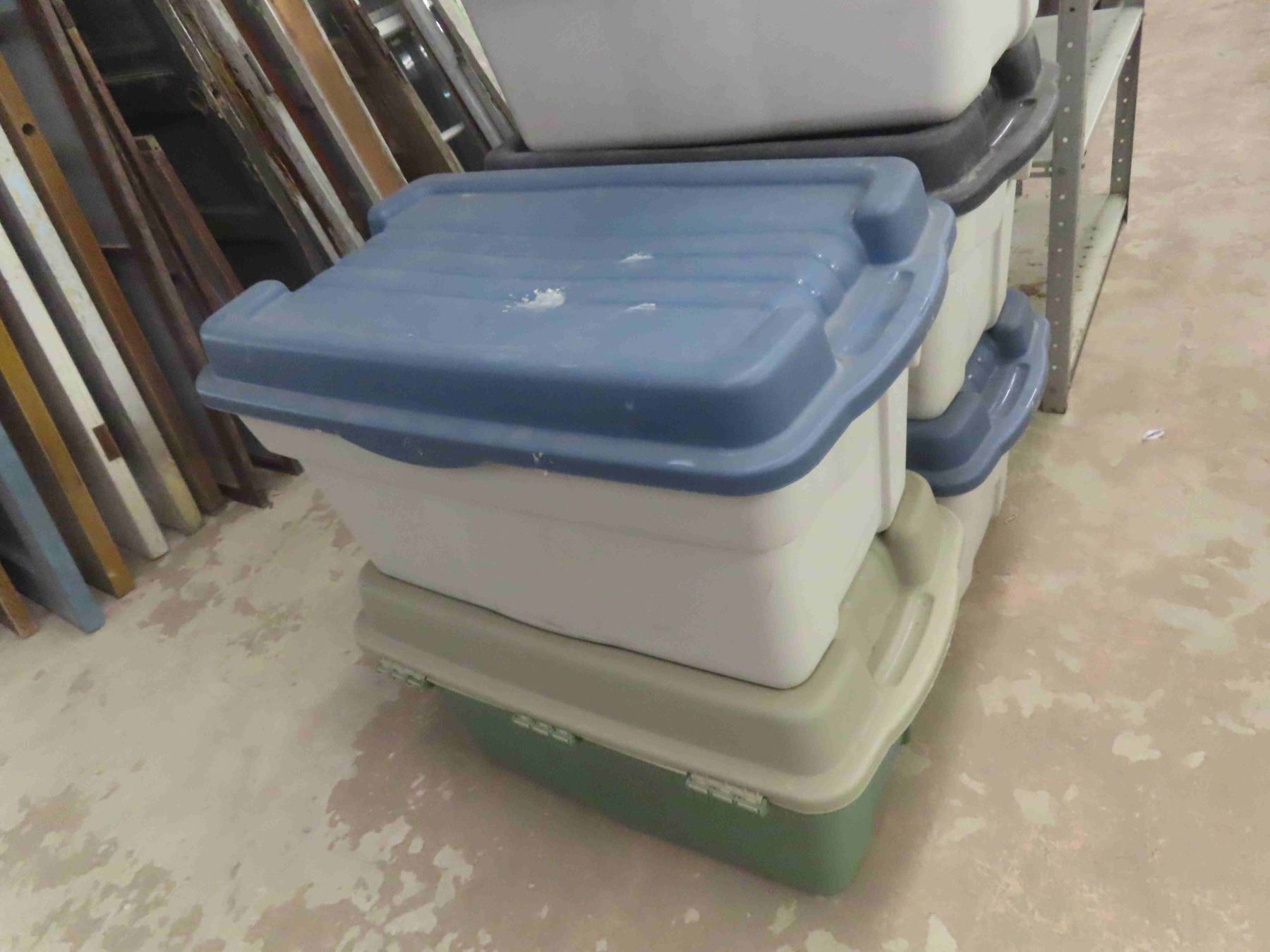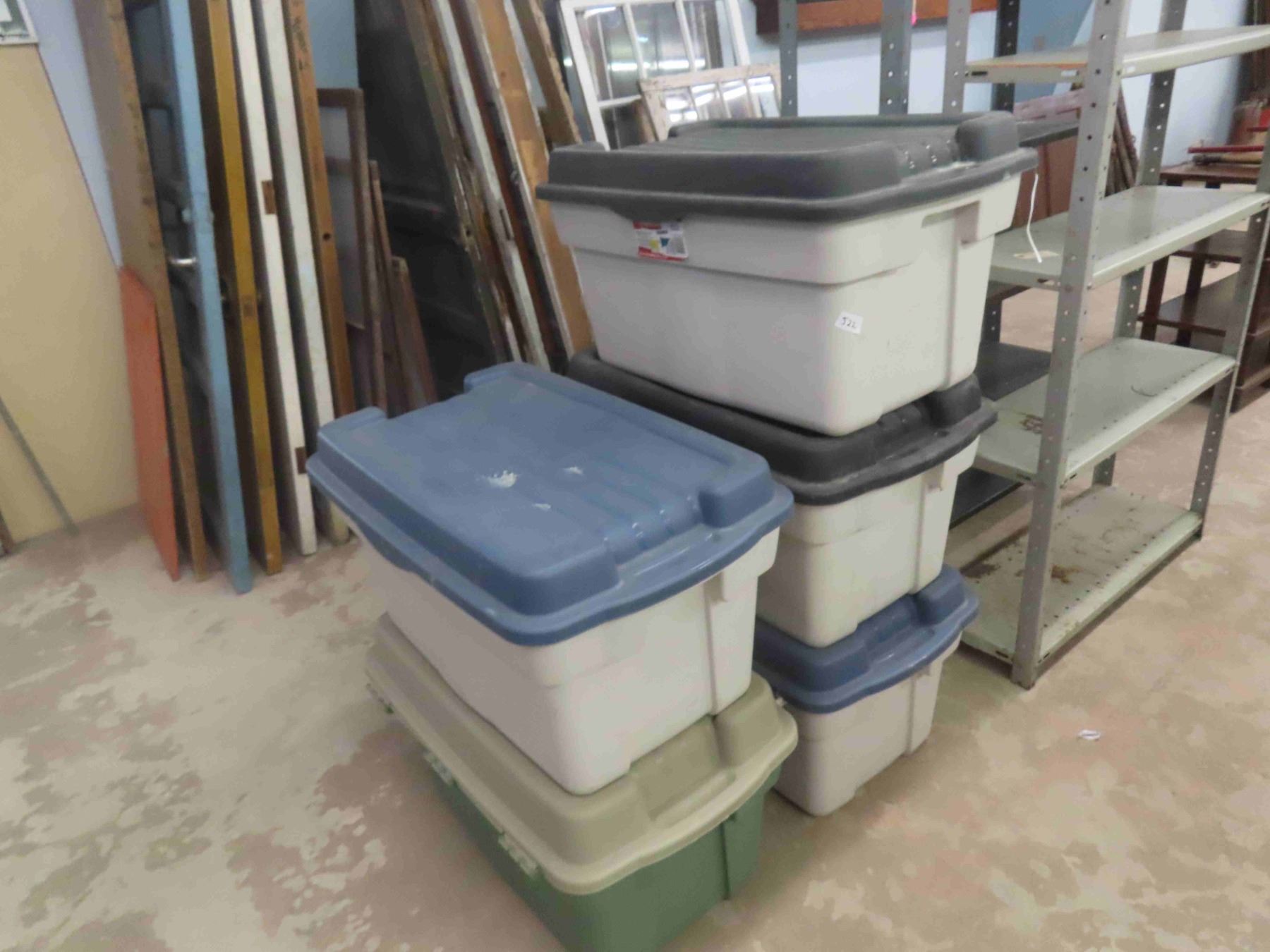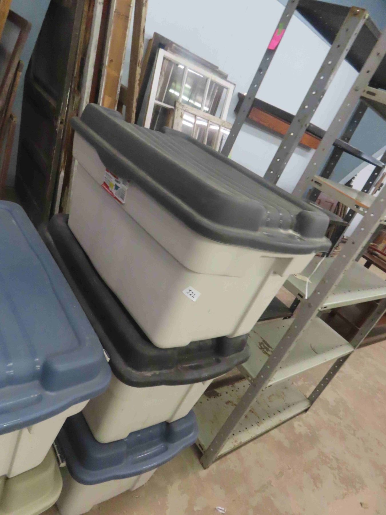 5 Rubbermaid Totes with Hinged Lid 16"x 20" x 32"