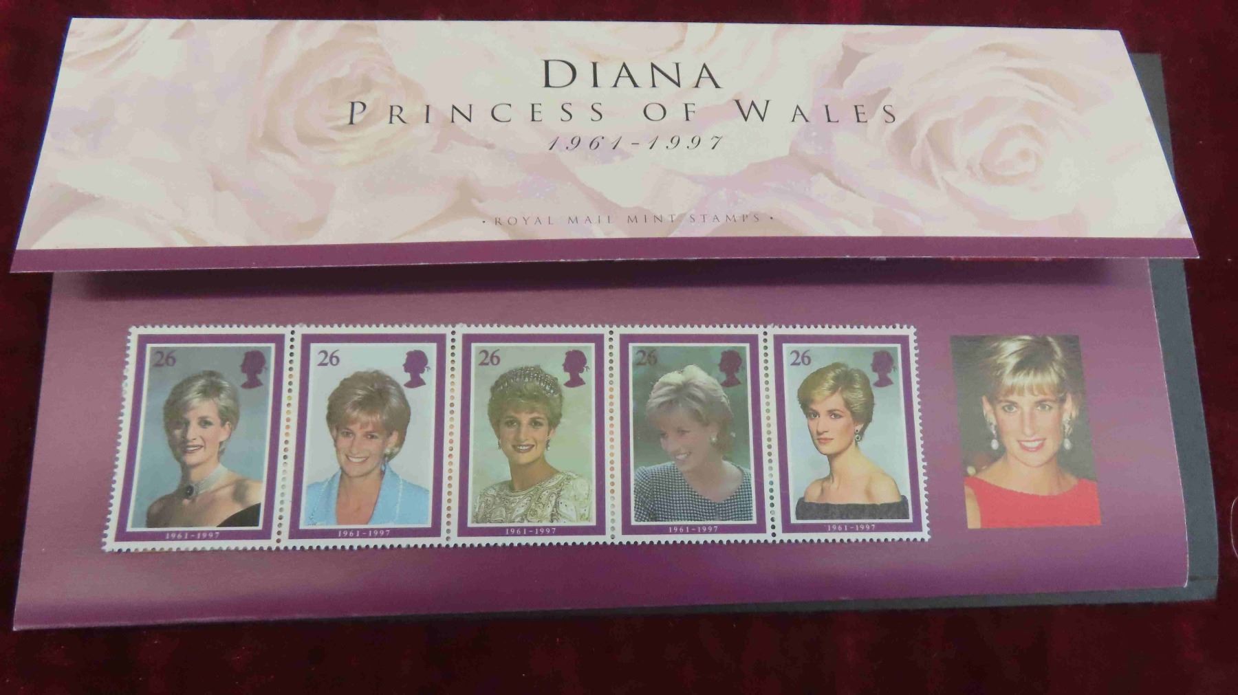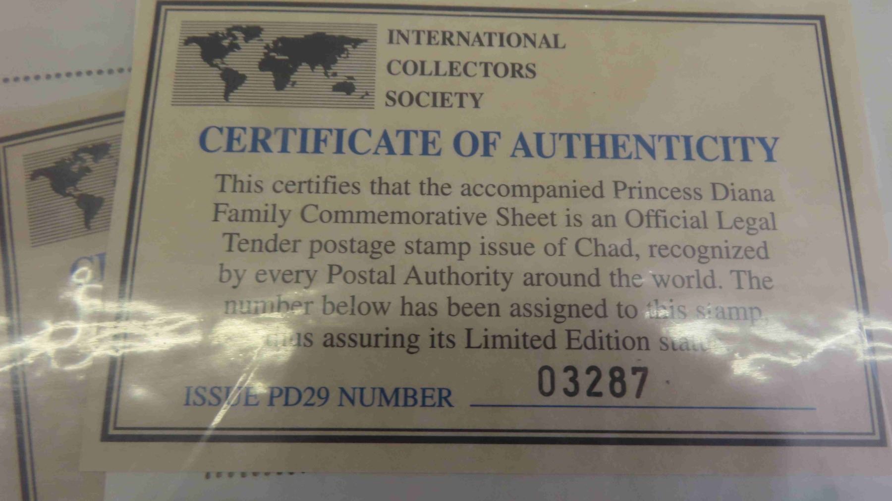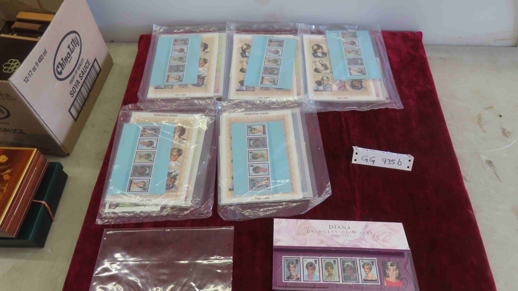 5 Sealed Packages of Lady Diana Stamps with Certificate of Authenticity, Plus