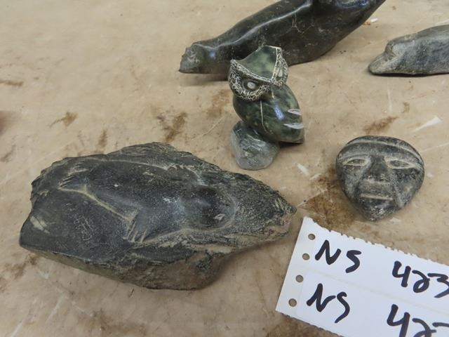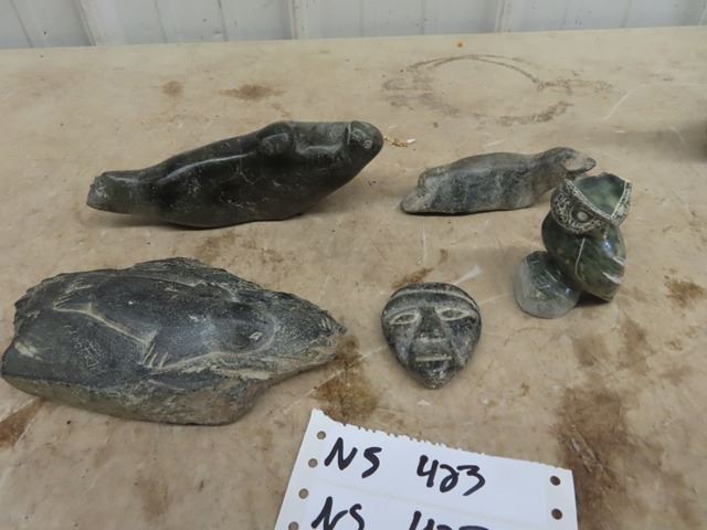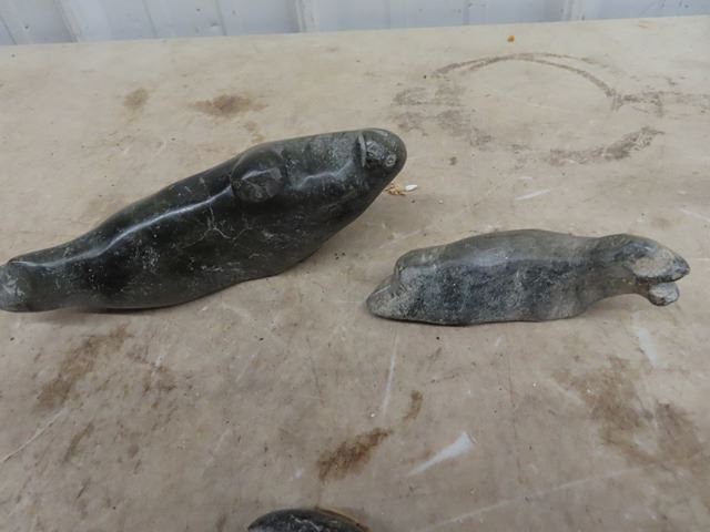 5 Soapstone Ornaments, 3 Seals, 1 Owl, & 1 Eskimo
