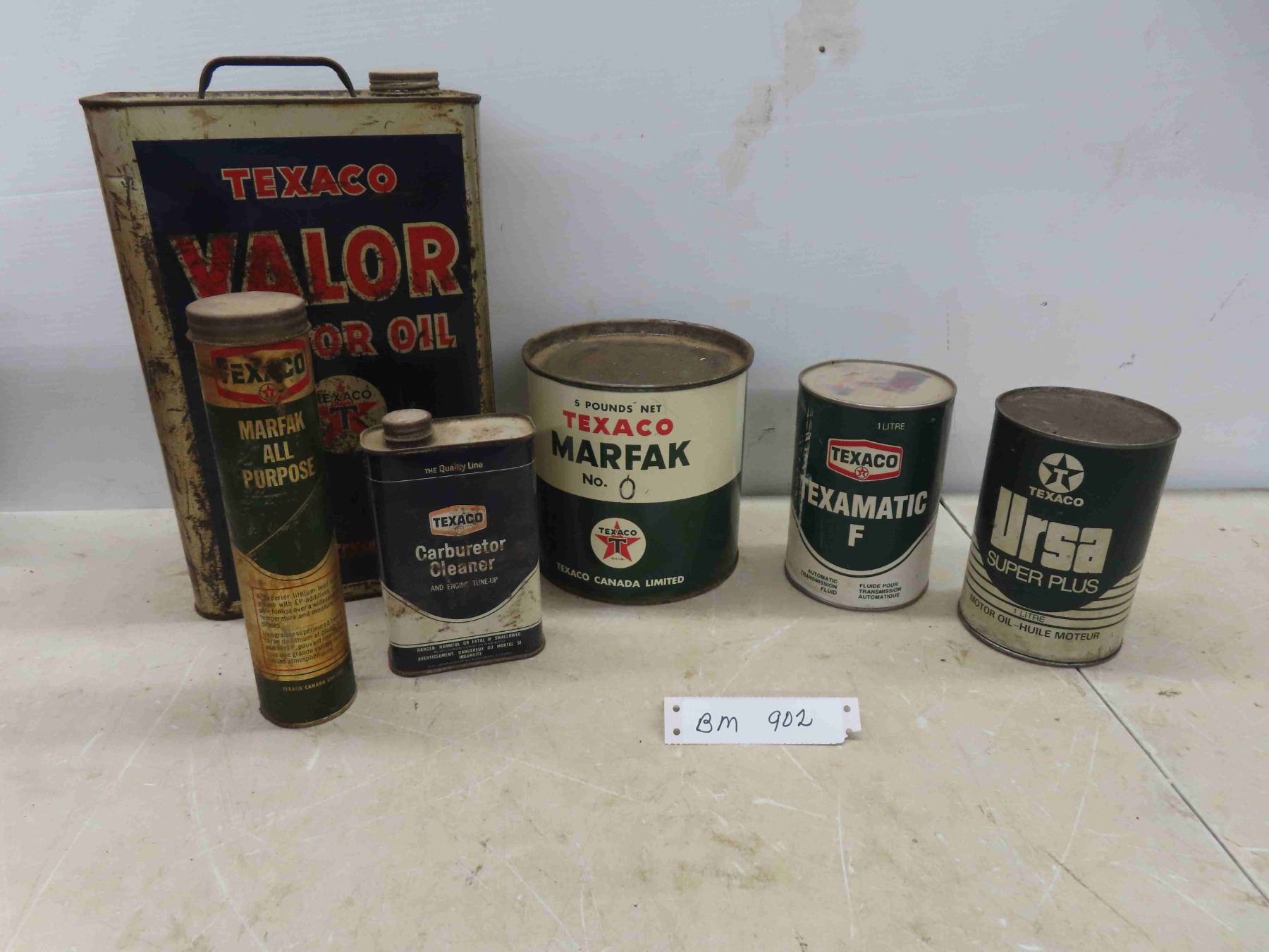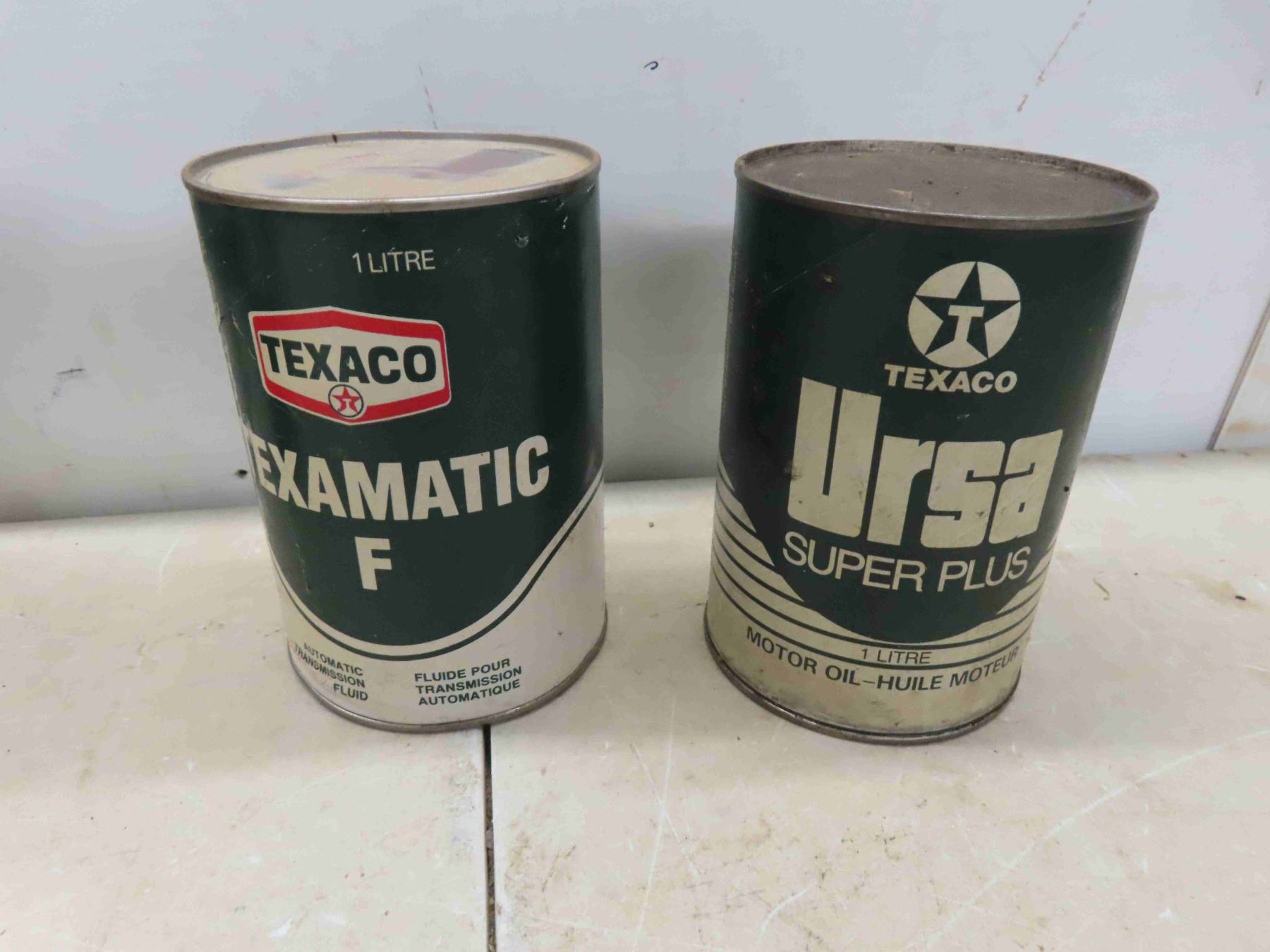 5 Texaco Cans: Oil, Marfak, Tranny Fluid, Carb Cleaner,