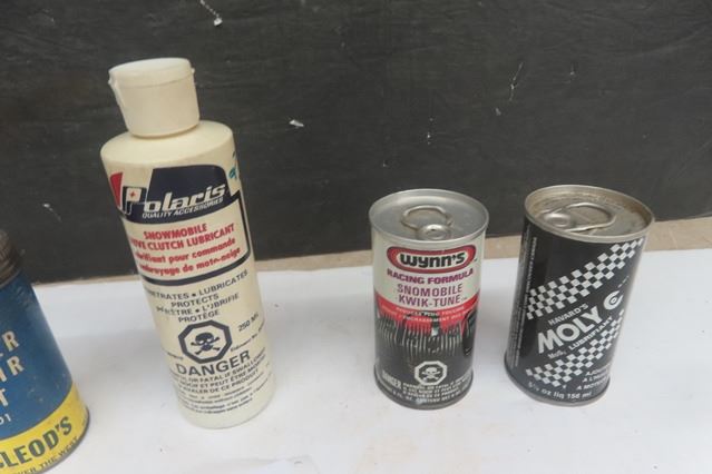 5 Tins ; Lubi-Loy Crest Rubber Repair, Polaris Clutch Hub Plastic, Wynn's Racing Formula, Moly L Lubricant