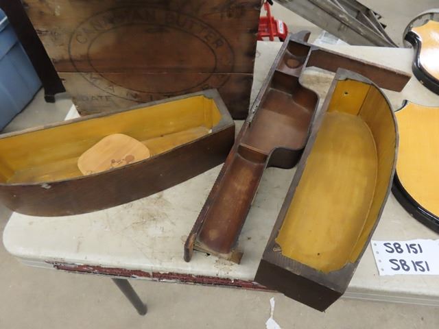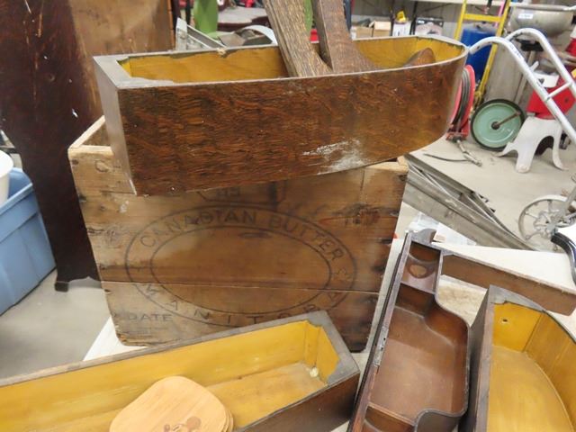 5 Trophy Plaques, Sewing Machine Drawers, Butter Box