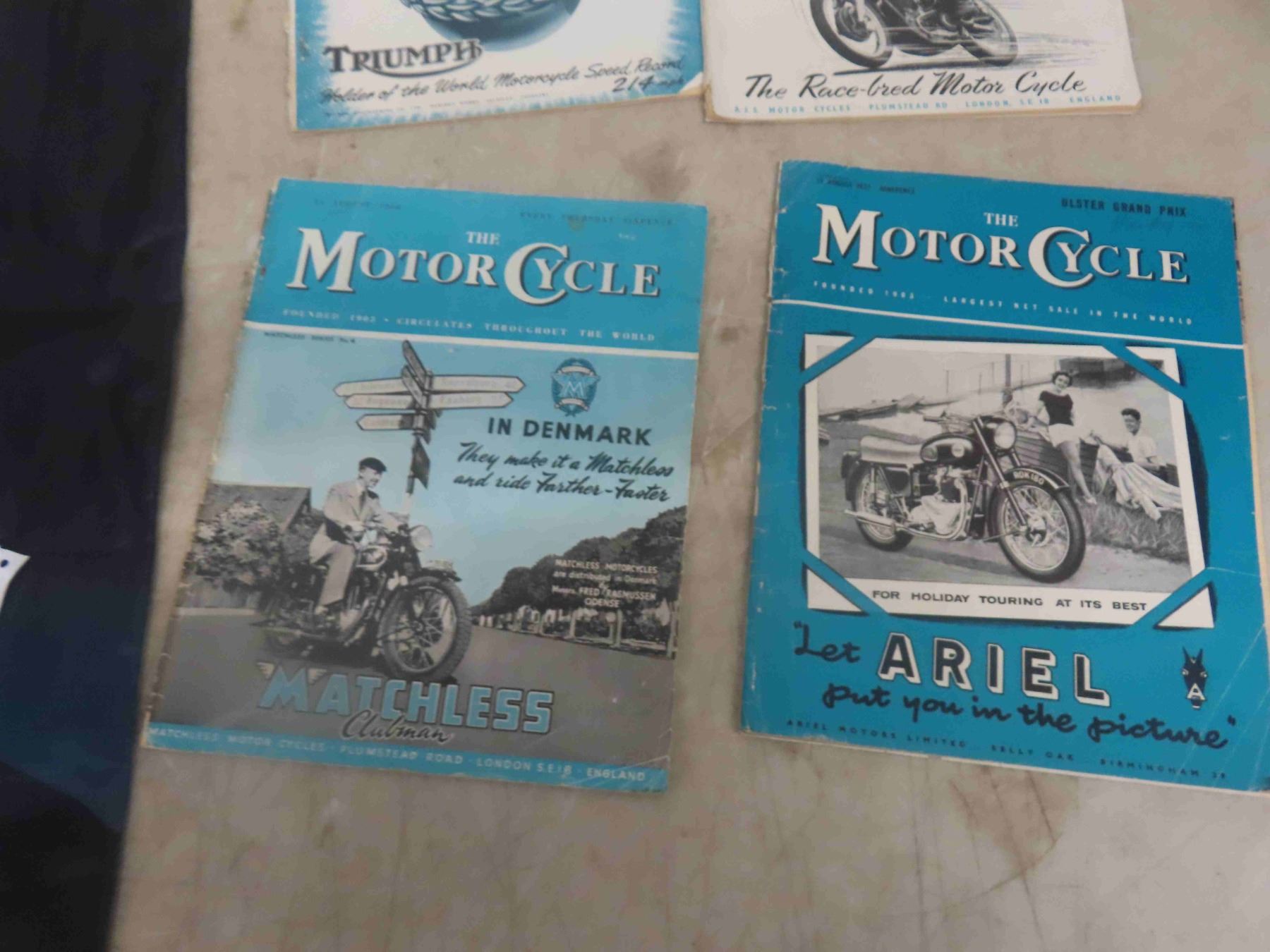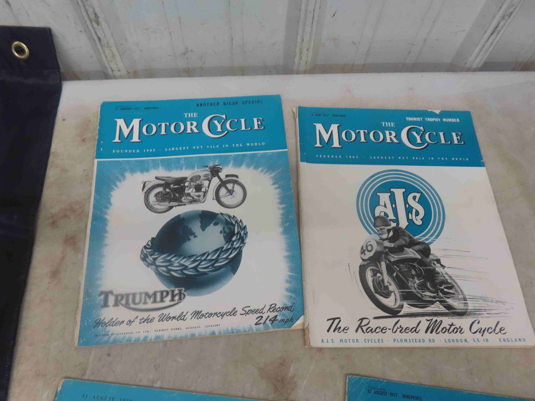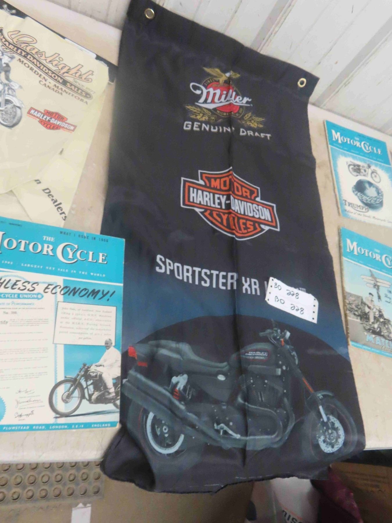 5 Vintage 1950s 'The Motorcycle' Magazines and Harley Davidson Banner.