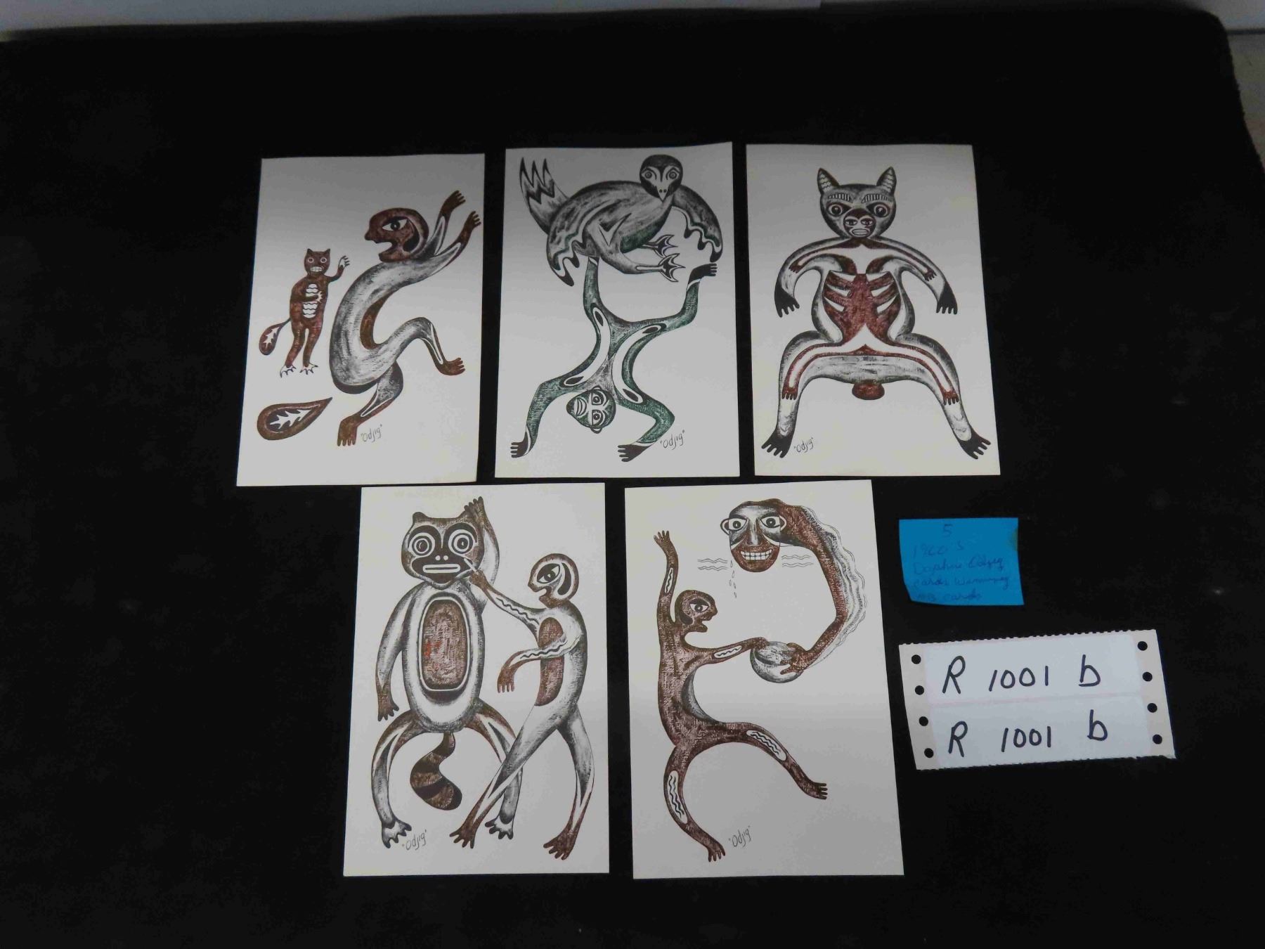 (5) Vintage 1960s Daphne Odjig 6 1/2'' x 4 1/4'' Marked Winnipeg