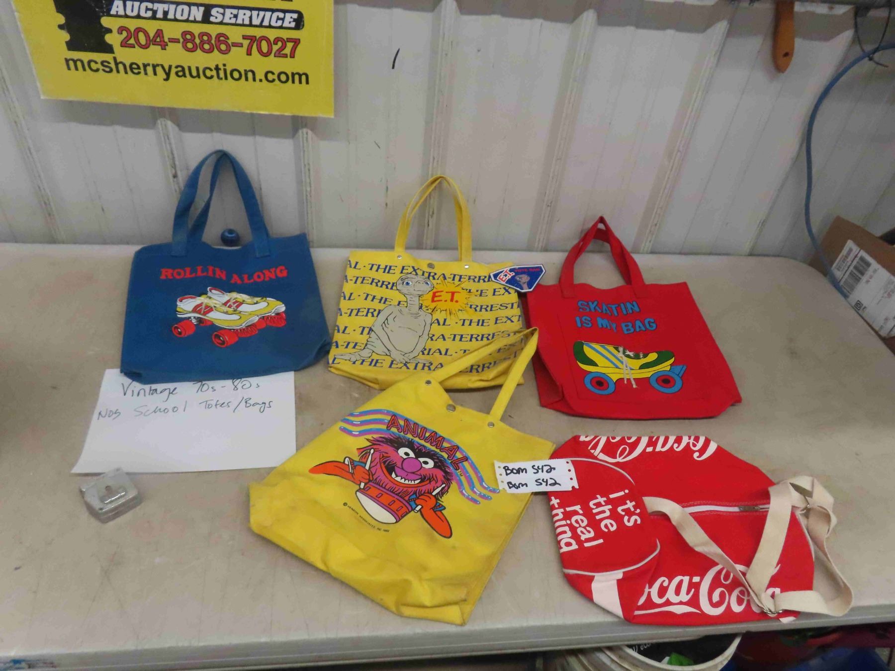 5 Vintage ( 70s -80s) School Totes/ Bags ; ET, Muppets, Coke, Plus others