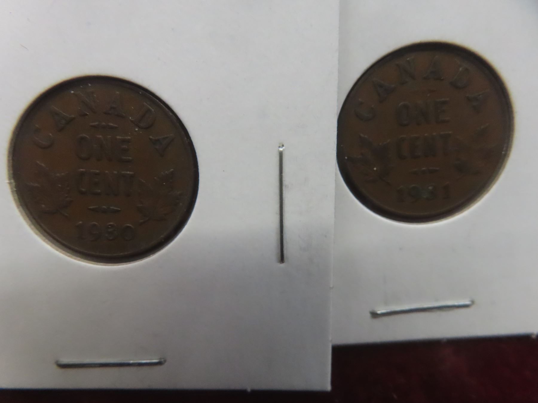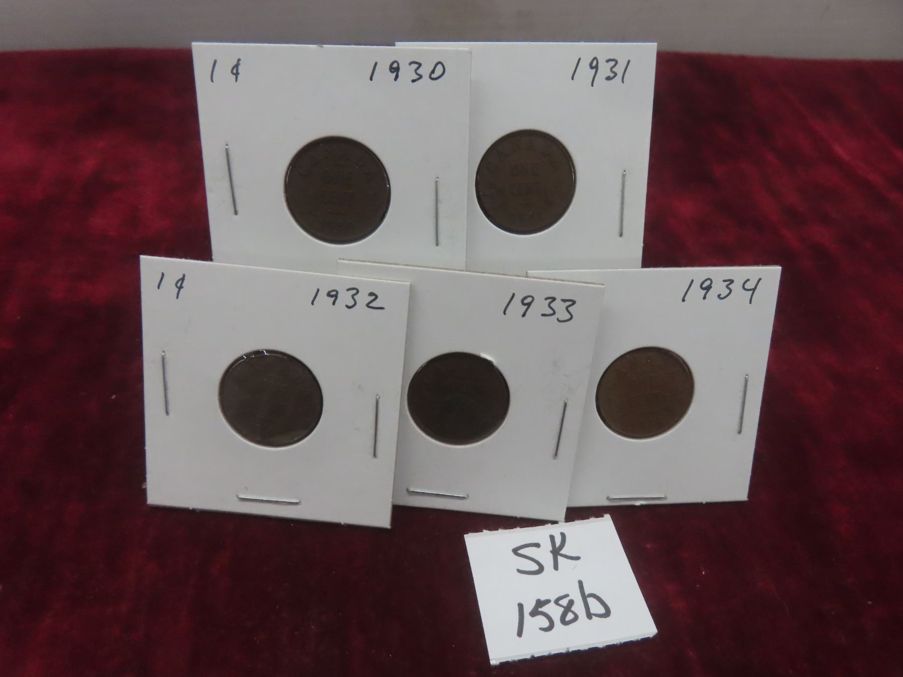 5 Vintage Canada Pennies 1930,31,32,33,34.