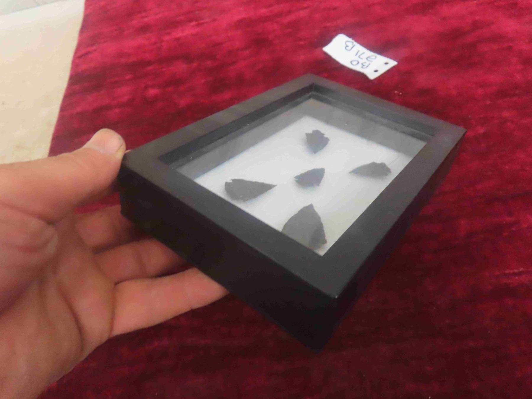 5 Vintage Stone Arrowheads in Shadow Box Display Frame