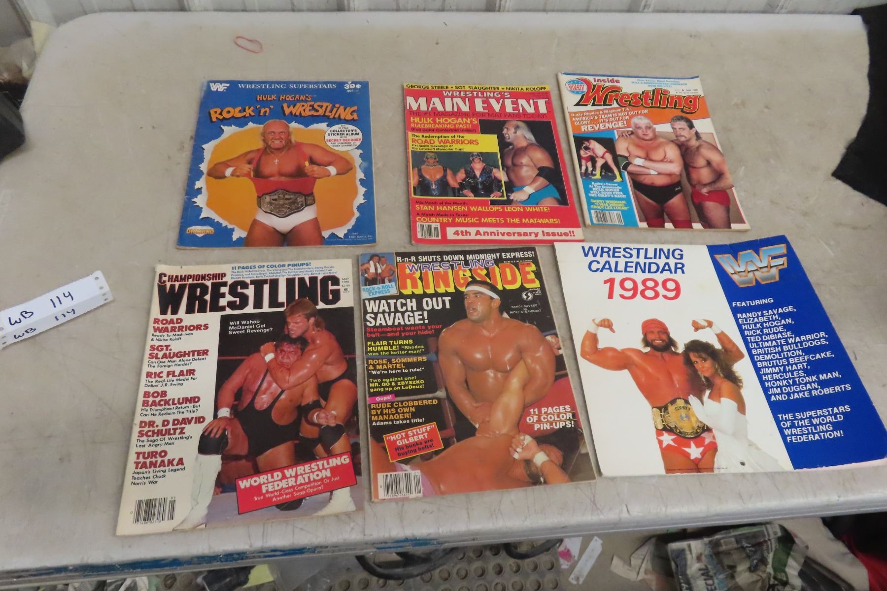 5 Vintage Wrestling Magazines & Calendar, Hulk Hogan, Road Warriors, Savage