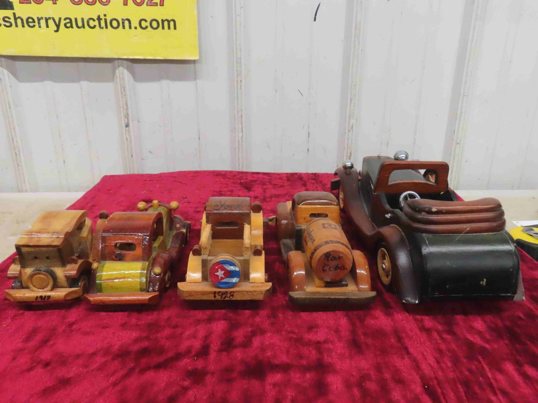 5 Wooden Vehicles - Largest 4.75" x 5.5" x 15"