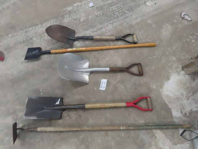 5 Yard Tools; 3 Shovels, 1 Hoe, 1 Ice Pick
